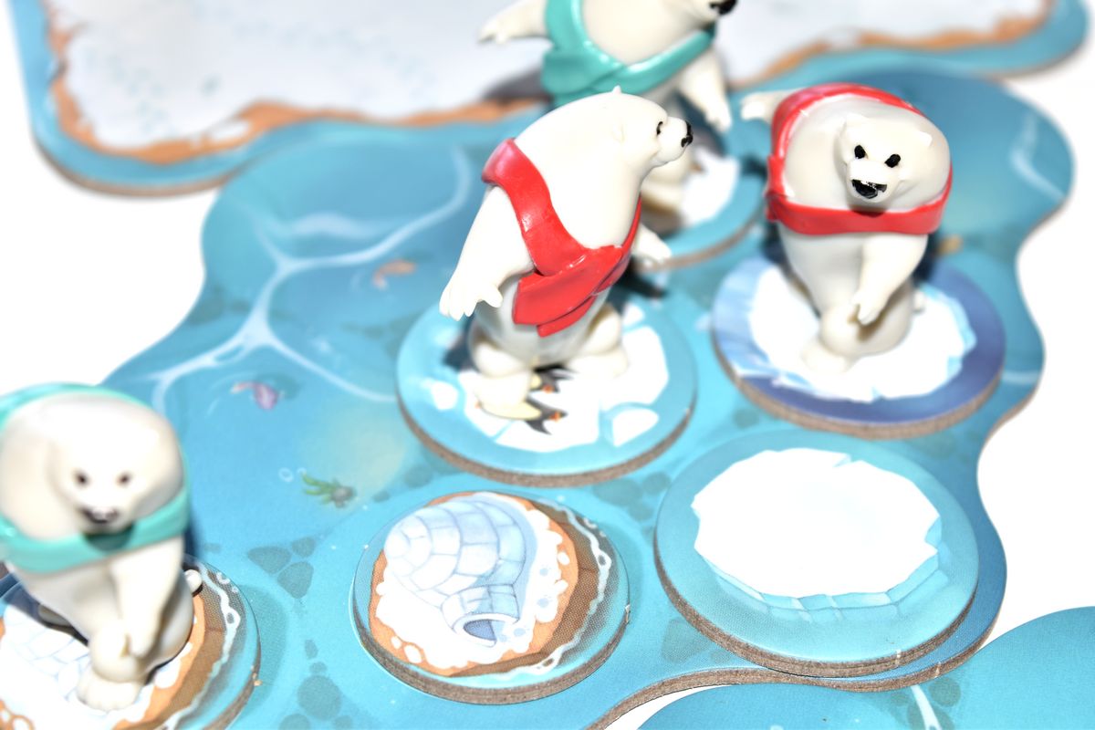 Il va falloir gérer correctement ses déplacements pour ramasser du poisson, mais aussi pour les congeler. Parce que tant qu’ils ne sont pas congelés, votre adversaire peut vous les subtiliser. A savoir que la victoire peut se jouer jusqu’au bout, puisque dès qu’un ours franchit la ligne d’arrivée, les dés sont relancés et le joueur peut en choisir un pour gagner encore du poisson ! Alors si un joueur apporte ses 4 ours à l’arrivée, pendant que l’autre n’en amène que deux ça peut faire vite mal !