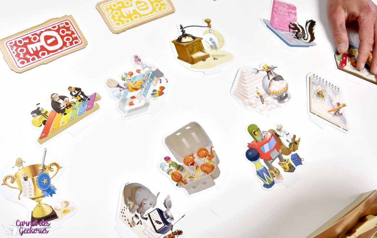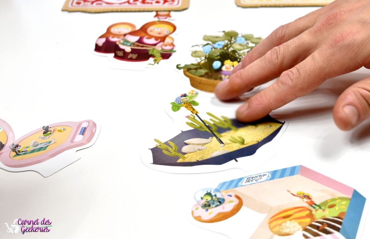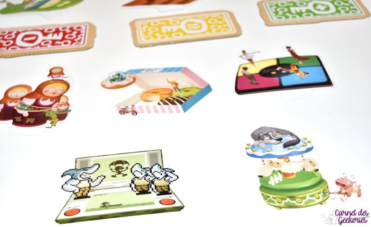 Vu comme j’avais beaucoup apprécié Shadows, je me doutais que ça me ferait le même effet avec celui là, et je n’ai pas été déçue. Le concept fonctionne, et c’est ce qui compte pour un bon moment ludique. Petits et grands apprécieront sans aucun doute, et c’est sûrement aujourd’hui ce qui fait la force des jeux proposés par Libellud ! Pas de thème en particulier, mais après tout on s’en moque un peu tant que la mécanique plait. C’est pas vraiment le genre de jeu pour lequel je m’attends à un thème, donc aucun soucis de ce côté là.