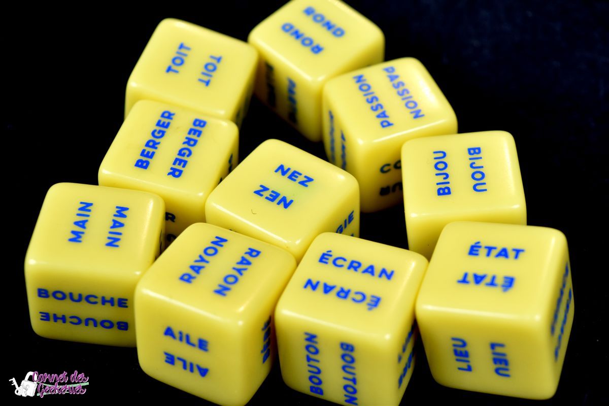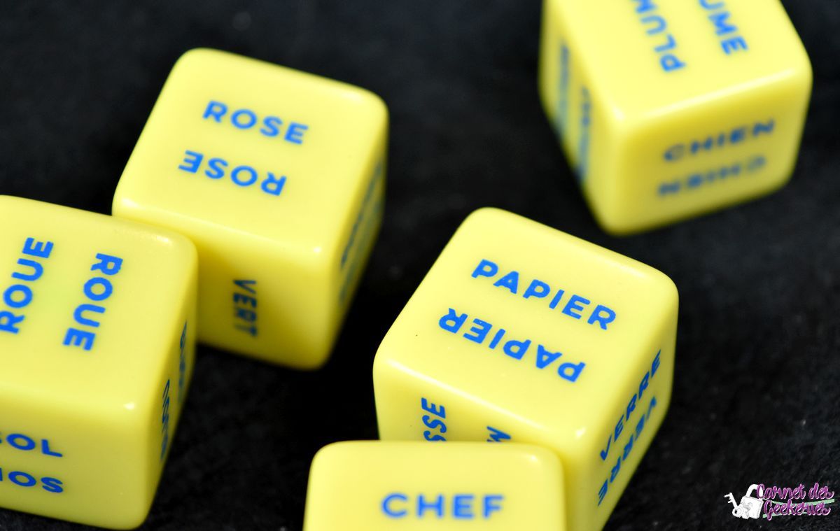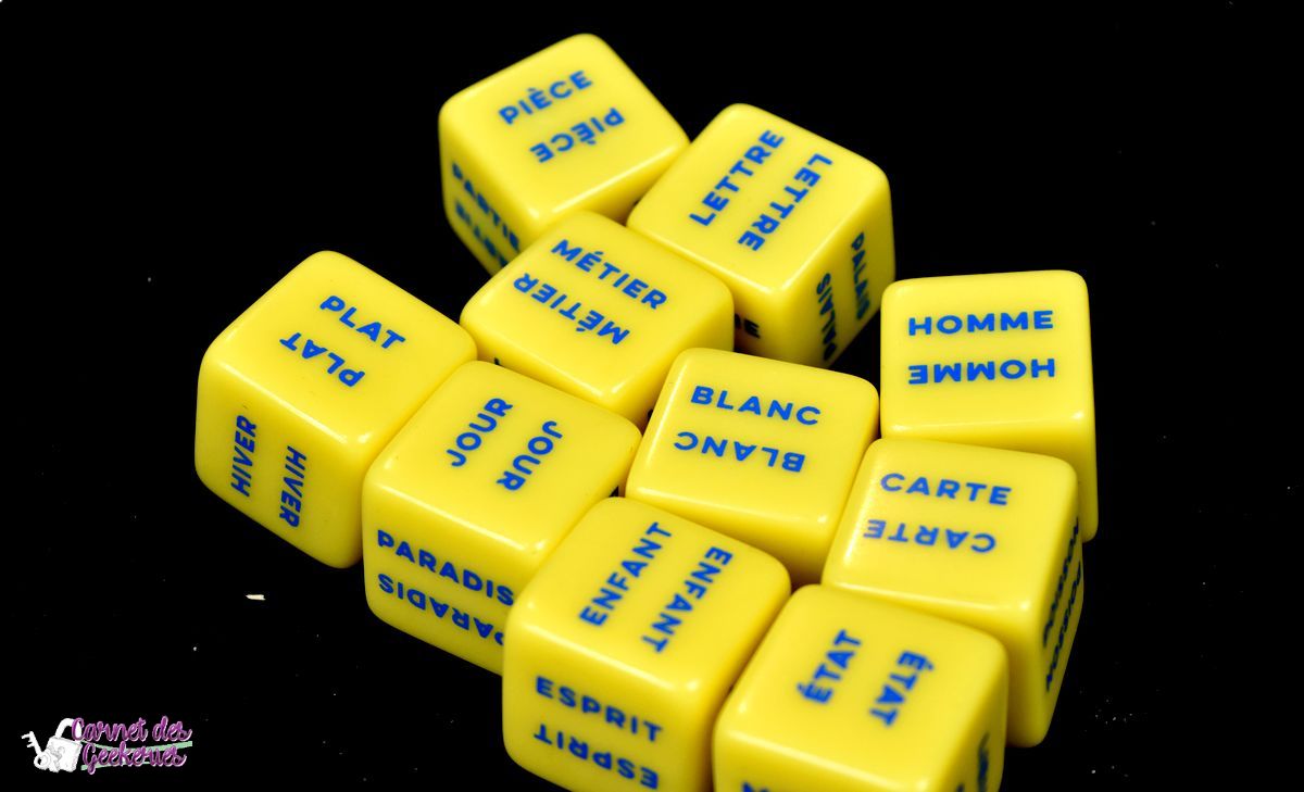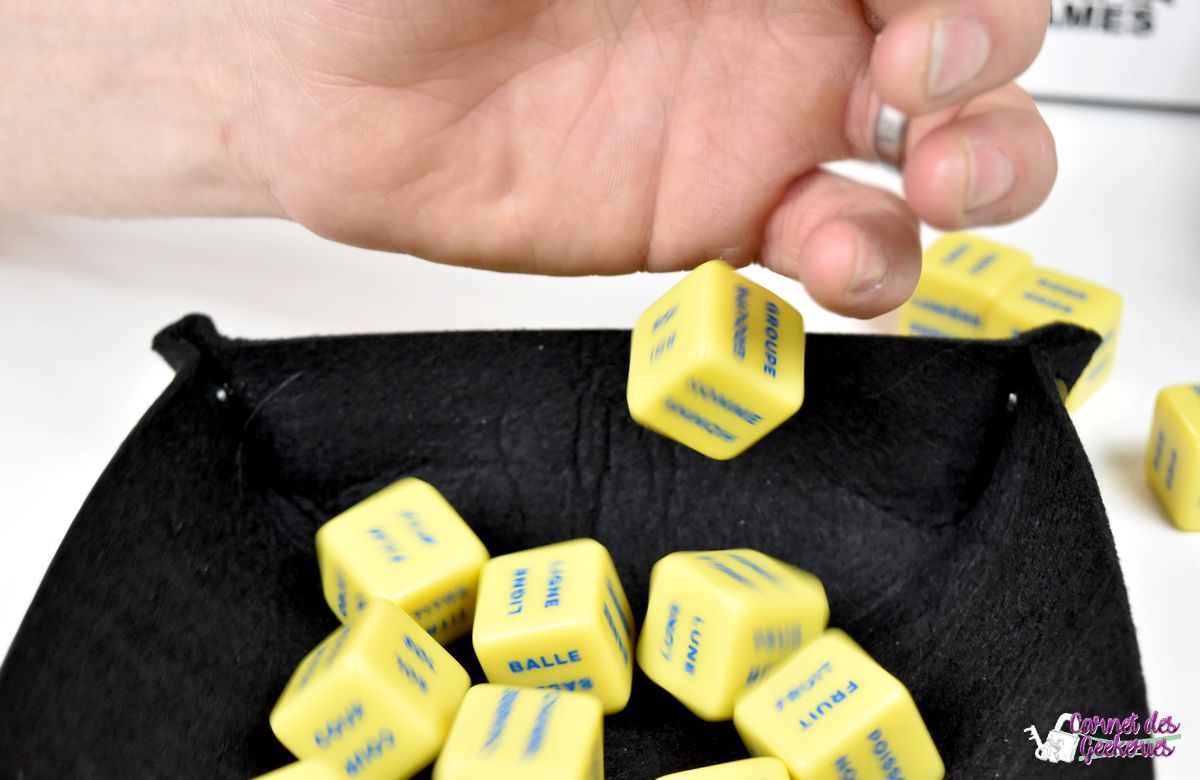 Vu les nombreuses combinaisons possibles avec les dés, l’imagination sera indispensable dans ce jeu. Vous allez devoir trouver un ou plusieurs mots qui sembleront aussi logiques pour les autres joueurs. Et croyez moi, ce qui peut être vraiment basique et logique pour vous, ne le sera pas pour tous.