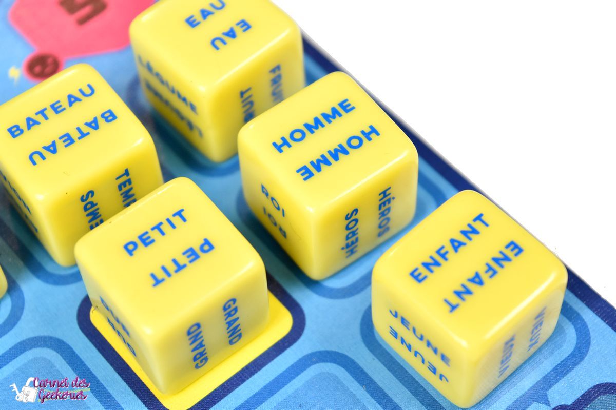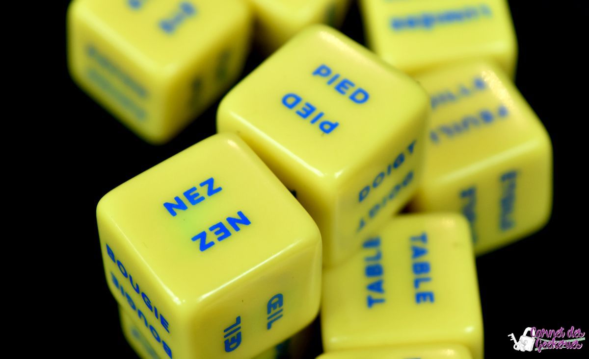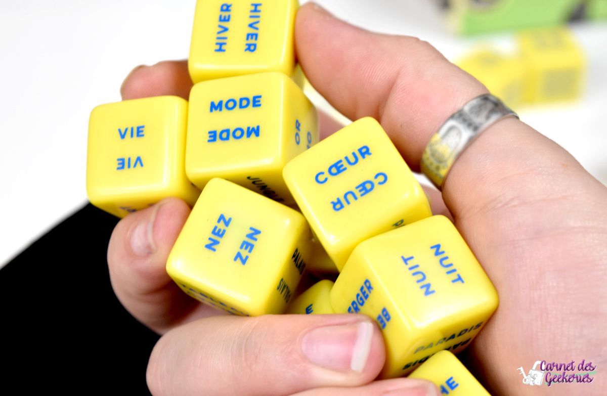 Vu les nombreuses combinaisons possibles avec les dés, l’imagination sera indispensable dans ce jeu. Vous allez devoir trouver un ou plusieurs mots qui sembleront aussi logiques pour les autres joueurs. Et croyez moi, ce qui peut être vraiment basique et logique pour vous, ne le sera pas pour tous.