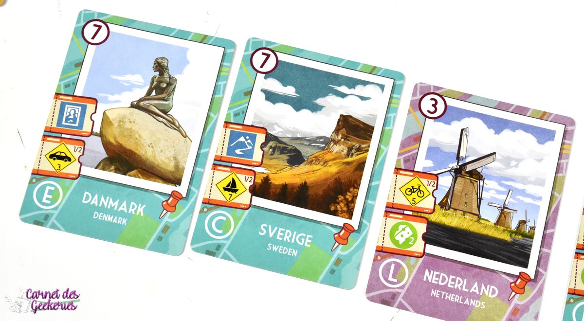 Toujours identique, avec des fiches un peu petites quand même surtout vu la taille de la boîte, elles auraient pu être plus grandes. L’édition reste chouette, colorée, et les illustrations des cartes sont vraiment sympas pour nous faire voyager.