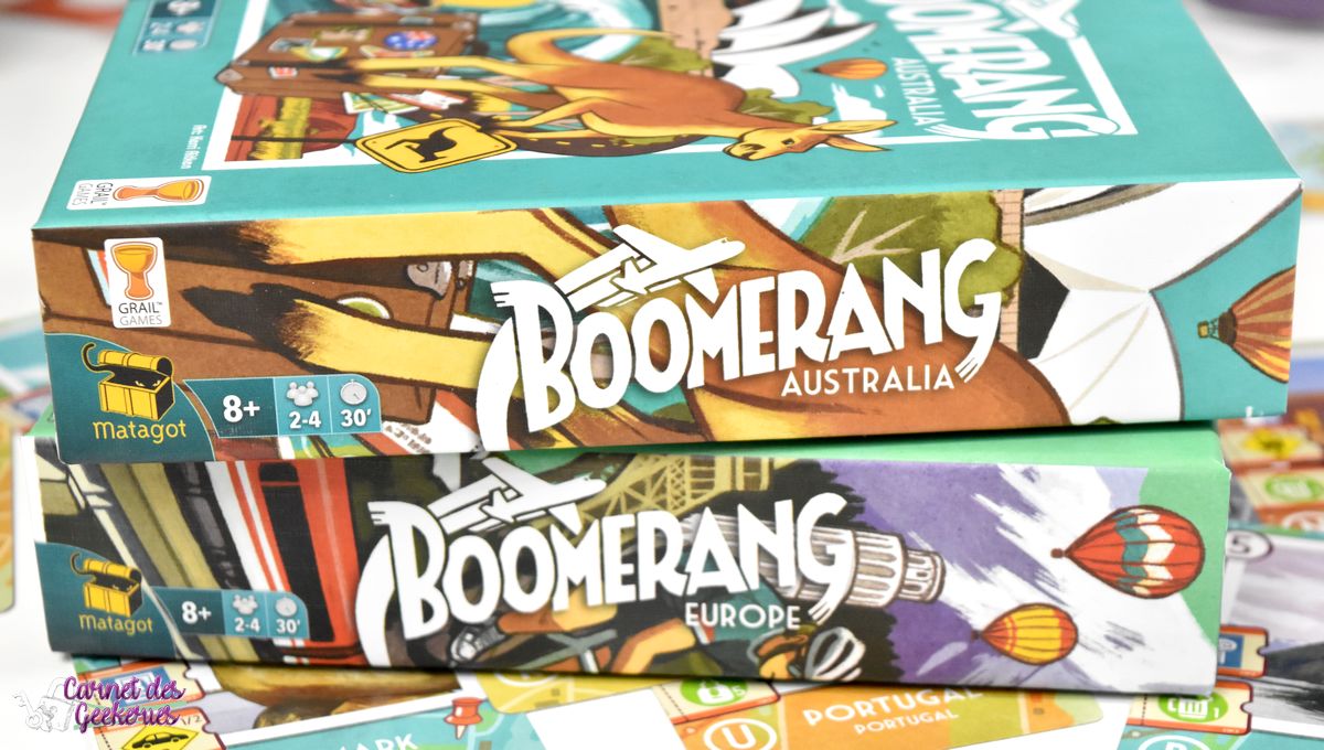 Boomerang, on en avait déjà parlé par ici avec la version Australie, la première de la Boomerang Family ! Avec Max, on a eu la possibilité de tester les deux nouveaux qui sont sortis, Europe et USA, et on vous propose de voyager dans ce flip & write chez Matagot !