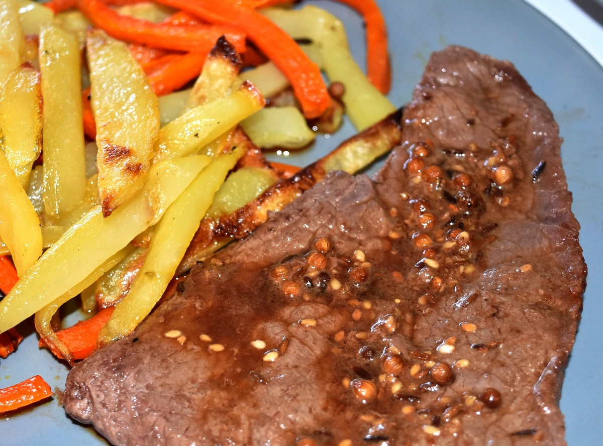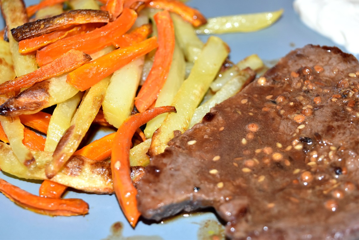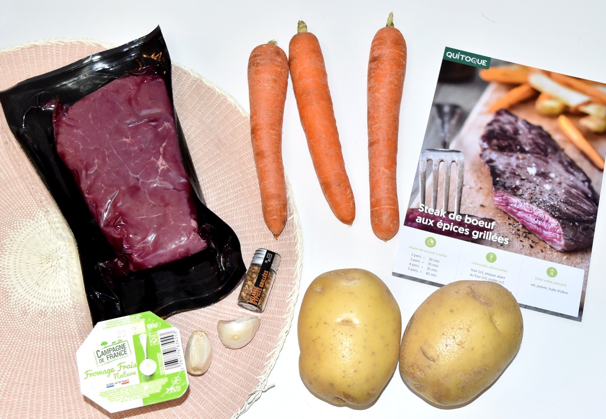 Ensuite, c’était le boeuf mariné aux épices avec ses frites de pommes de terre et carottes. Et là je dois avouer que j’étais un peu plus sceptique parce que je ne mange pas de carottes. Et bien, autant vous dire que Quitoque m’a réconcilié avec les carottes 😉 Bon ok, façon frites cuites au four, mais quand même ! Les délais de réalisation et cuisson sont bien corrects, et nous n’avons pas eu de mauvaises surprises 😉
