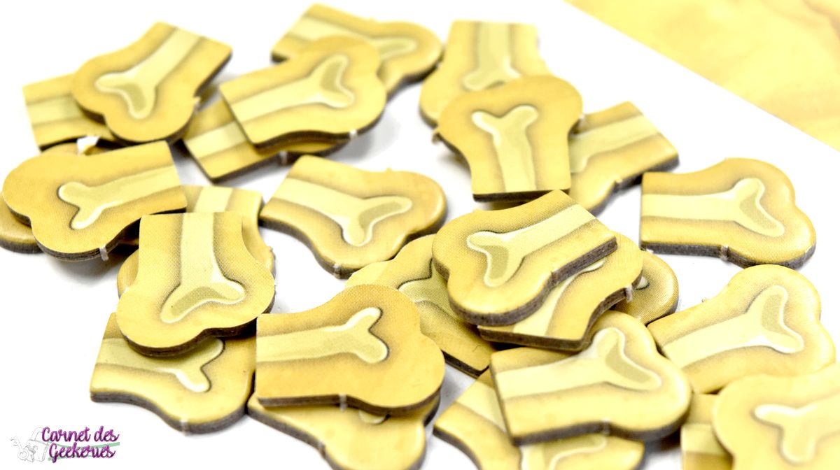 Certaines tuiles ont des icônes dessus, et feront des événements : échanger un fossile avec un autre joueur, refaire une fouille immédiatement, recevoir un jeton os, gagner 2 points de victoire.