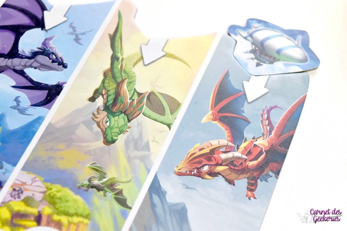 Côté matériel, rien à redire, c’est coloré, attrayant, avec des dragons très chouettes et un matériel bien sympa. On retrouve un plateau central de qualité, et plein de cartes transparentes (comme dans Mystic Vale) qui vont venir améliorer les différentes îles de votre parc.