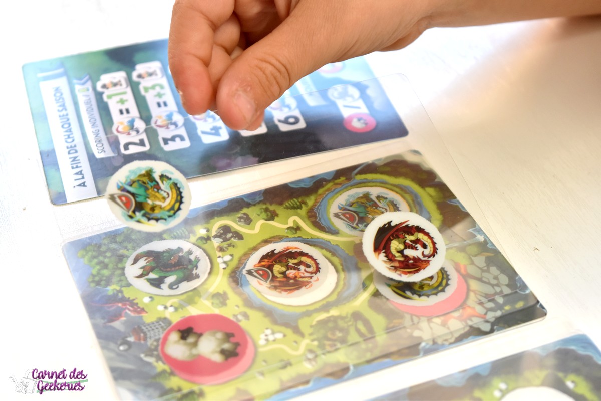 Dans Dragon Parks, vous allez donc devoir, en 3 saisons, améliorer votre parc et faire les comptes de vos visiteurs qui sont passés, le tout en simultané.