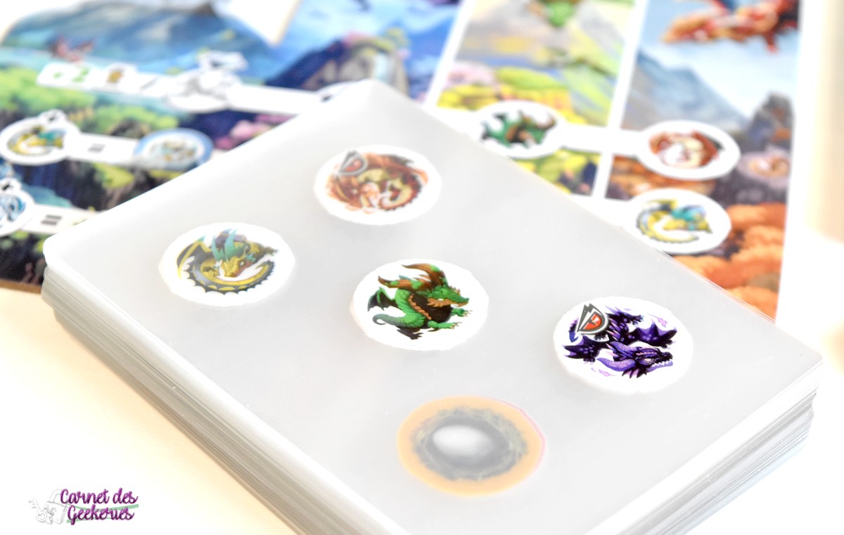 60 cartes dragon transparentes – 82 jetons visiteurs