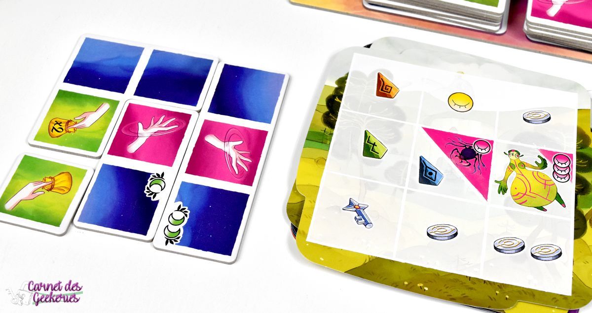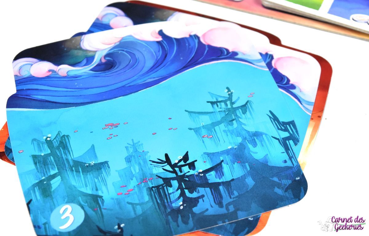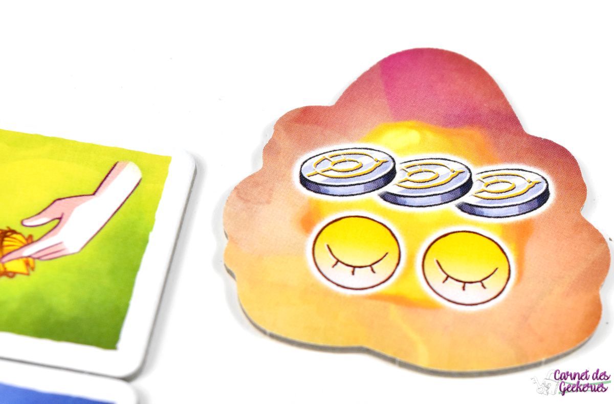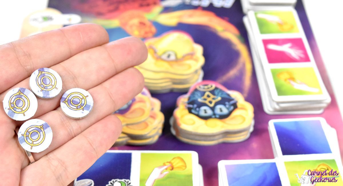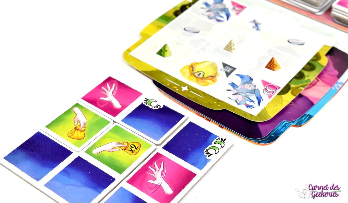J’avais repéré le matériel à Cannes et forcément le jeu m’avait beaucoup attiré. C’était coloré, plein de matériel, et ça donnait envie. En me renseignant un peu plus dessus, parce qu’à Cannes je n’avais pas pu jouer, l’intérêt était toujours là et je voulais vraiment l’essayer. C’est maintenant chose faite. On se retrouve dans un thème zen, calme, qui nous emmène dans le merveilleux monde des rêves. Mais le jeu aurait pu être tout aussi bon avec un autre thème sans aucun doute. Même si là, ça lui apporte la petite touche magique qui fait la différence.