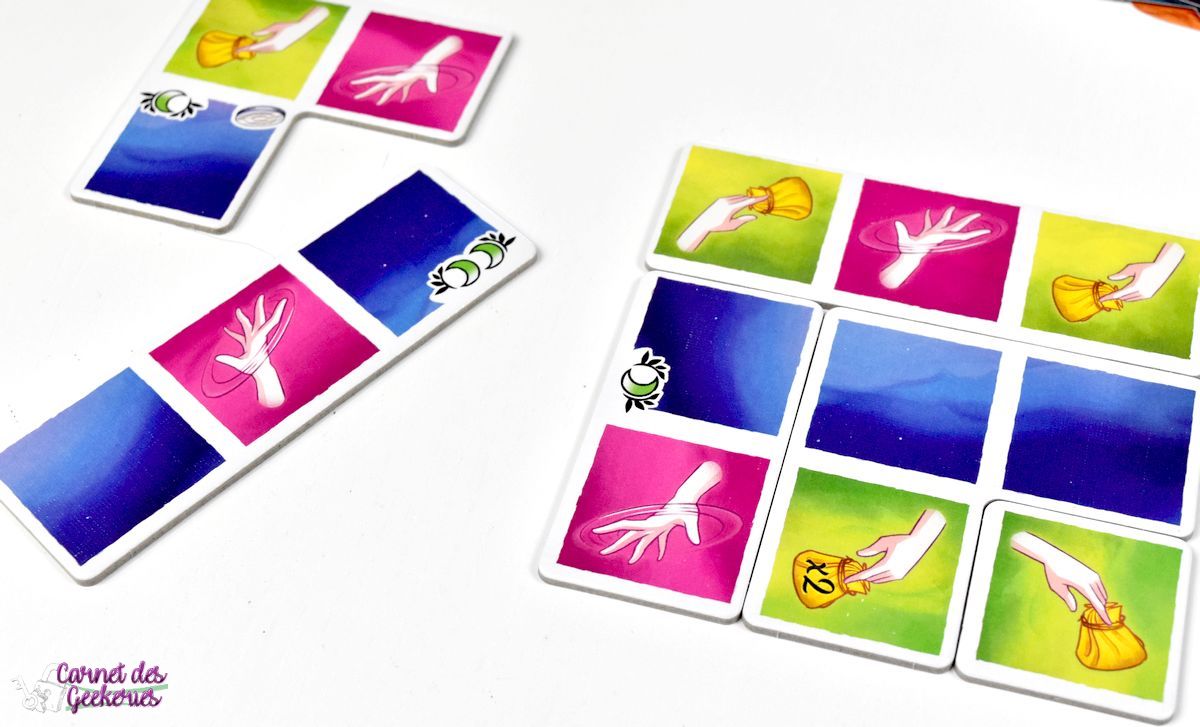 Petit à petit le jeu évoluera puisque les joueurs prendront de nouvelles tuiles. Et les cartes rêves seront aussi de plus en plus exigeantes. Mieux vaudra avoir quelques tuiles en rab pour avoir plus de choix dans vos résolutions. On a vraiment quelque chose de simple à appréhender, et son petit côté évolutif m’a beaucoup plu pour ne pas avoir l’impression de faire 4 manches totalement identiques.
