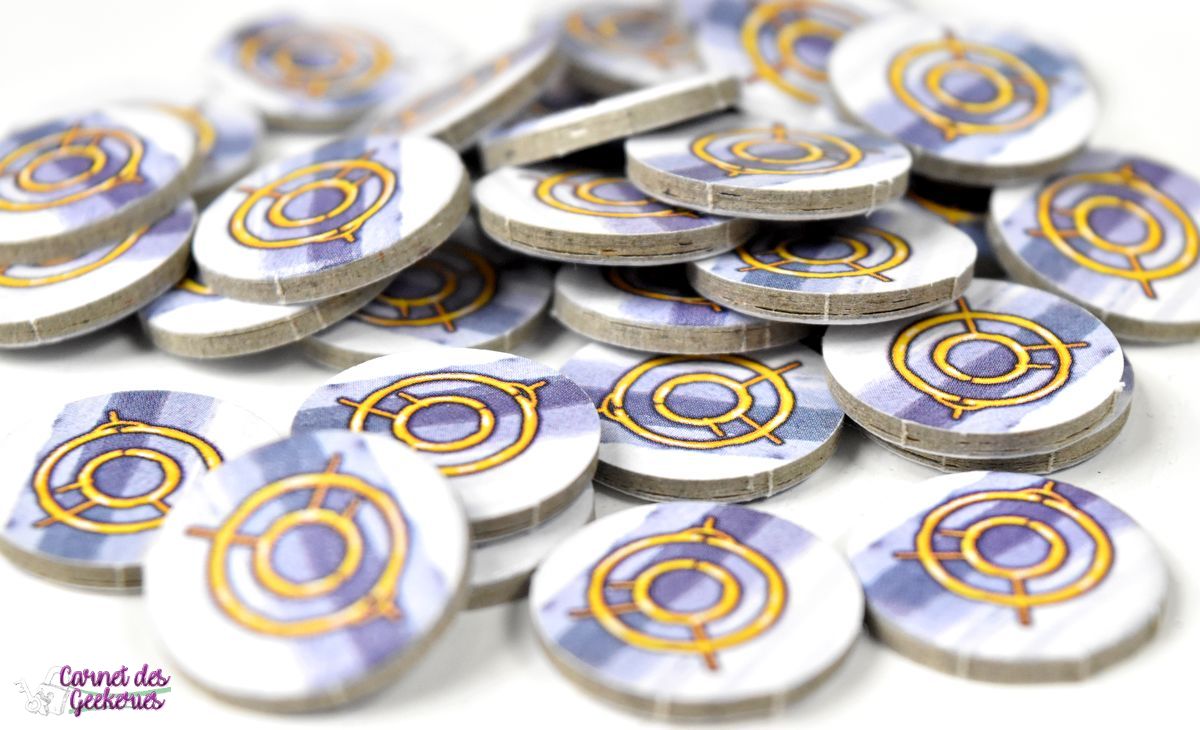 18 jetons coffres – 60 pièces – 20 jetons clés – 4 plateaux sérénité