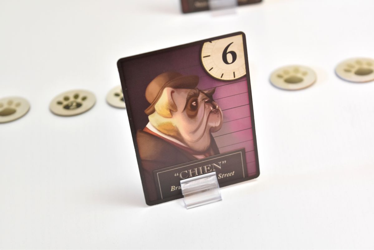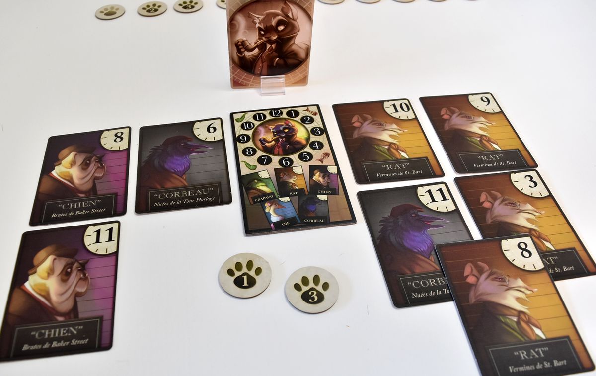 La fin de la partie s’annonce si Fourriarty est capturé ou si il réussit à s’enfuir … S’il est capturé, le joueur qui aura le plus de valeurs en empreintes de pattes gagnera la partie. Si il s’enfuit, il n’y a pas de vainqueur, tout le monde a perdu !