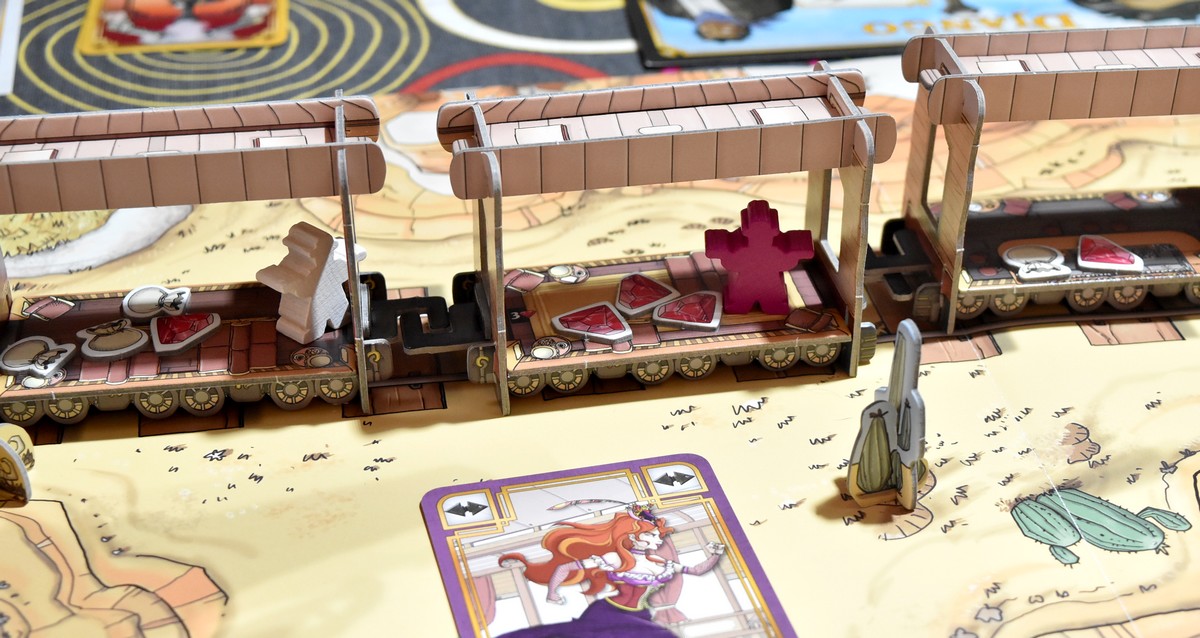 Ici, on a les règles simples, mais on peut, après quelques parties utiliser les règles avancées en utilisant les pouvoirs des personnages (avoir plus de cartes en main, tirer à travers le toit, éviter les balles, faire reculer d’un wagon …