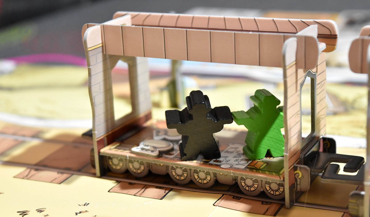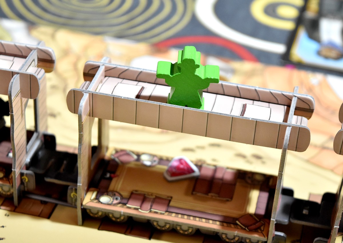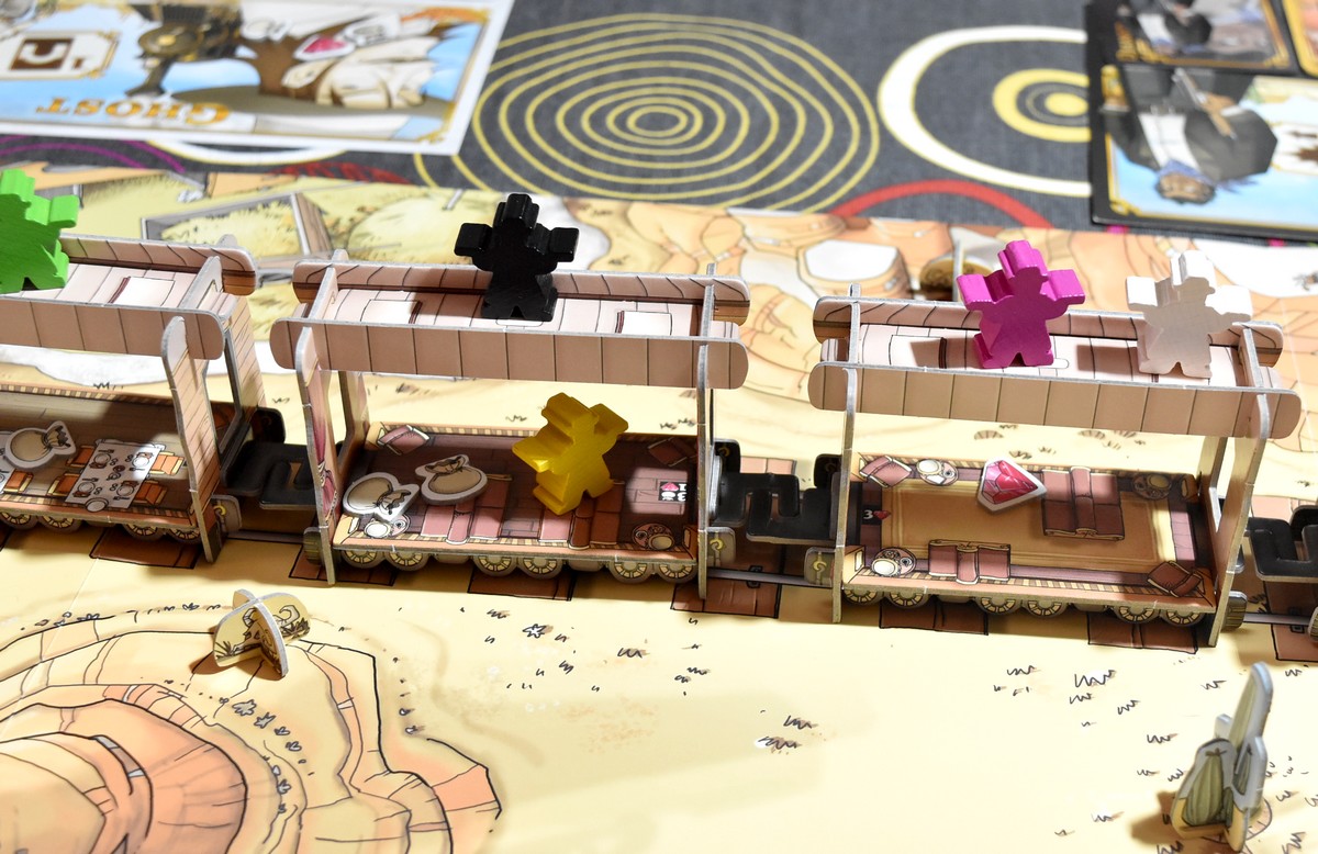 Dans Colt Express, on retrouve tous les bons points qui en font un très bon jeu dans sa catégorie : tactique, convivial, familial et accessible ! On a ici un jeu de programmation d’actions, où il va falloir anticiper et ruser un peu pour être sûrs que les coups précédents ou suivants ne ruineront pas tout sur notre passage !