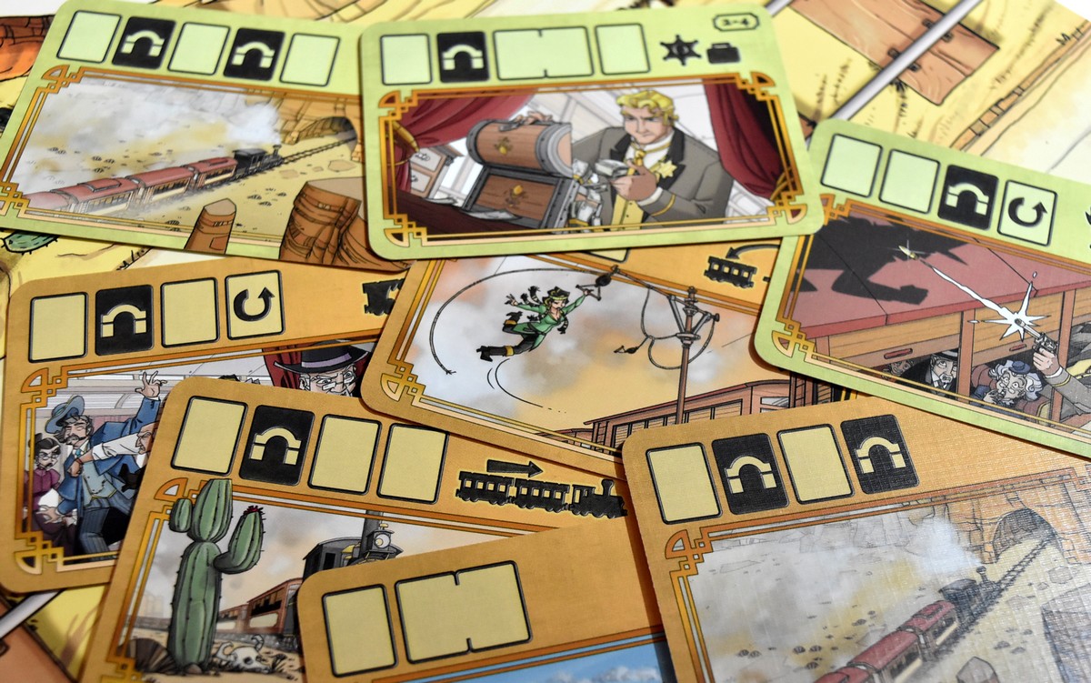 Les cartes plans indiqueront si le tour doit se jouer en sens normal, en sens inverse, en cachant les cartes ou en jouant deux cartes. Et croyez moi ça a son importance ! Certains évènements peuvent aussi inverser la tendance et renverser le jeu, avec un Marshal en colère par exemple, ou un freinage d’urgence …