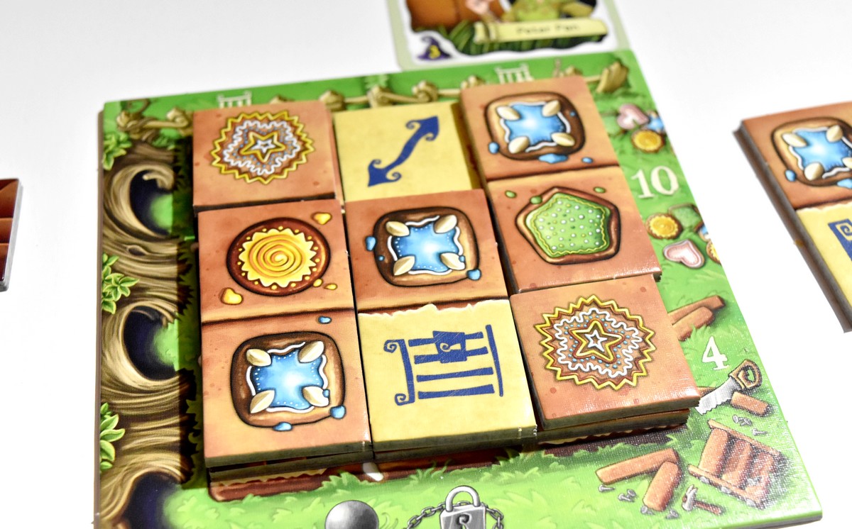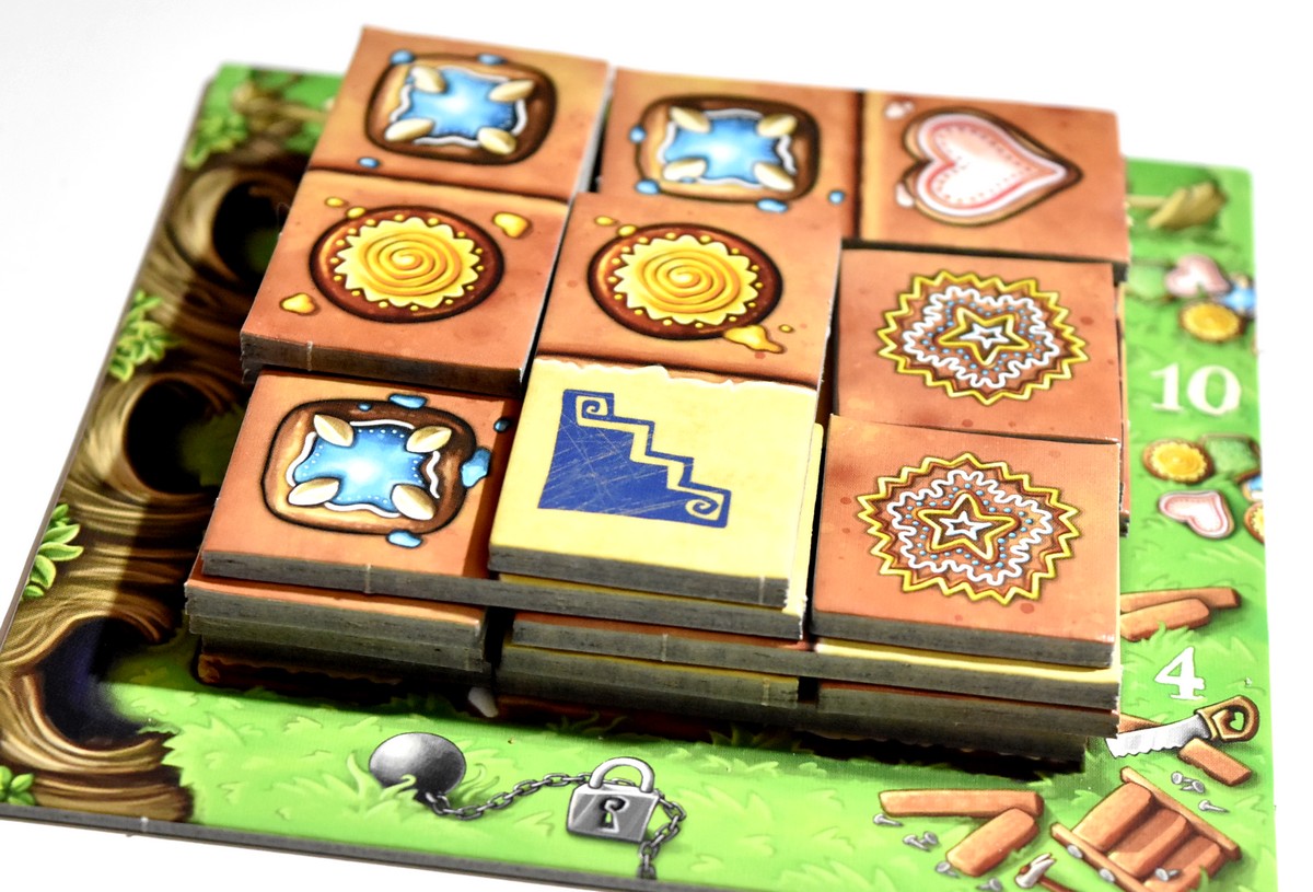 Alors oui, j’ai un petit bémol à ce jeu, c’est quand même le hasard du tirage des tuiles. Pas forcément très équitable, et qui peut vite faire pencher la balance … Pour exemple, vers la fin de la partie, je n’avais plus aucun portail … et donc impossible de ramener de nouveaux personnages vers ma maison. C’est un peu frustrant ! On se retrouve un peu désavantagés quand même 😉 Et c’est valable autant pour les symboles spéciaux que pour les morceaux de pains d’épices ! Alors il ne faut pas non plus critiquer le tout hein, ça ne vous empêchera pas de gagner si vous vous en sortez bien ! Loin de là 😉