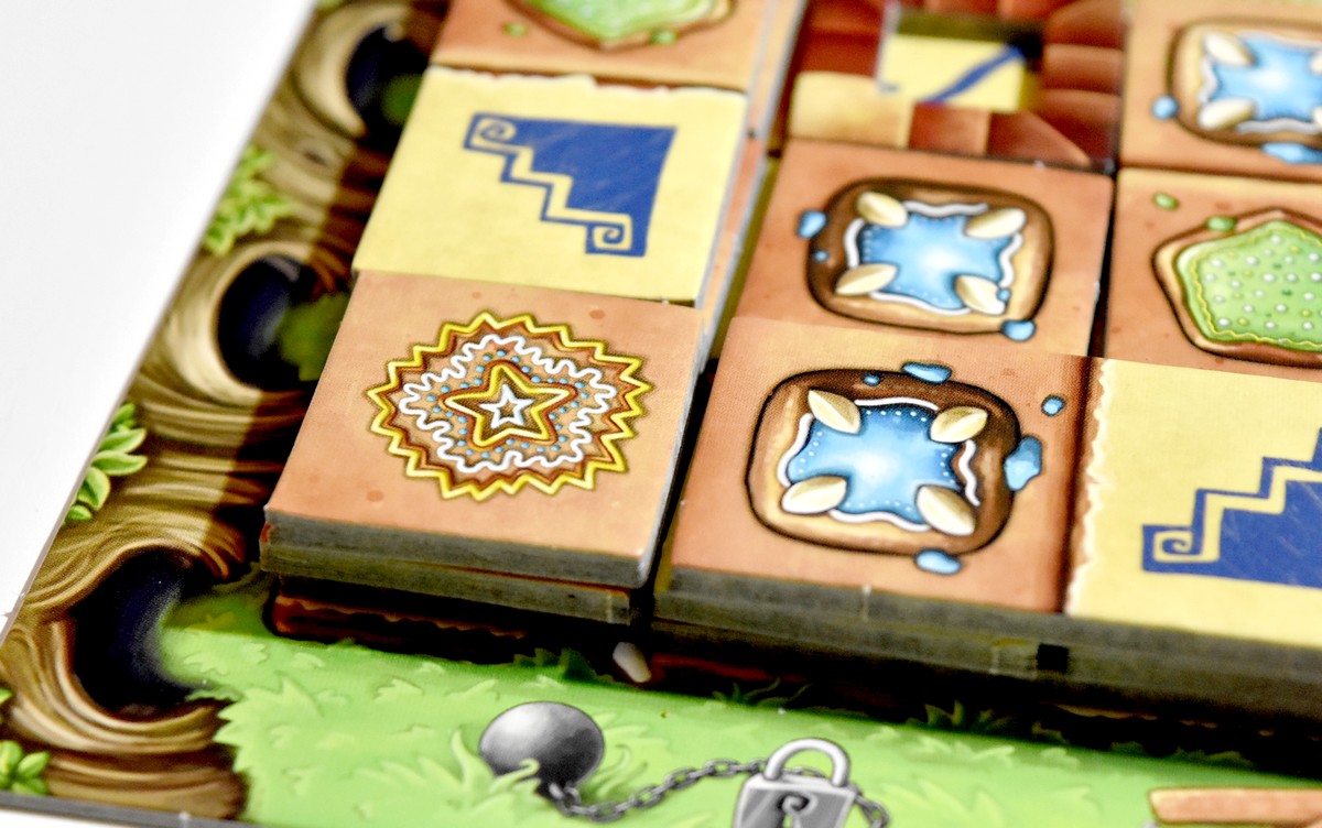 Sur les plateaux de jeux, on retrouve plusieurs indications : le portail qui permet d’attraper les personnages, le trésor pour collecter des cartes bonus, le garde-manger pour collecter du pain d’épices et l’atelier pour les escaliers.