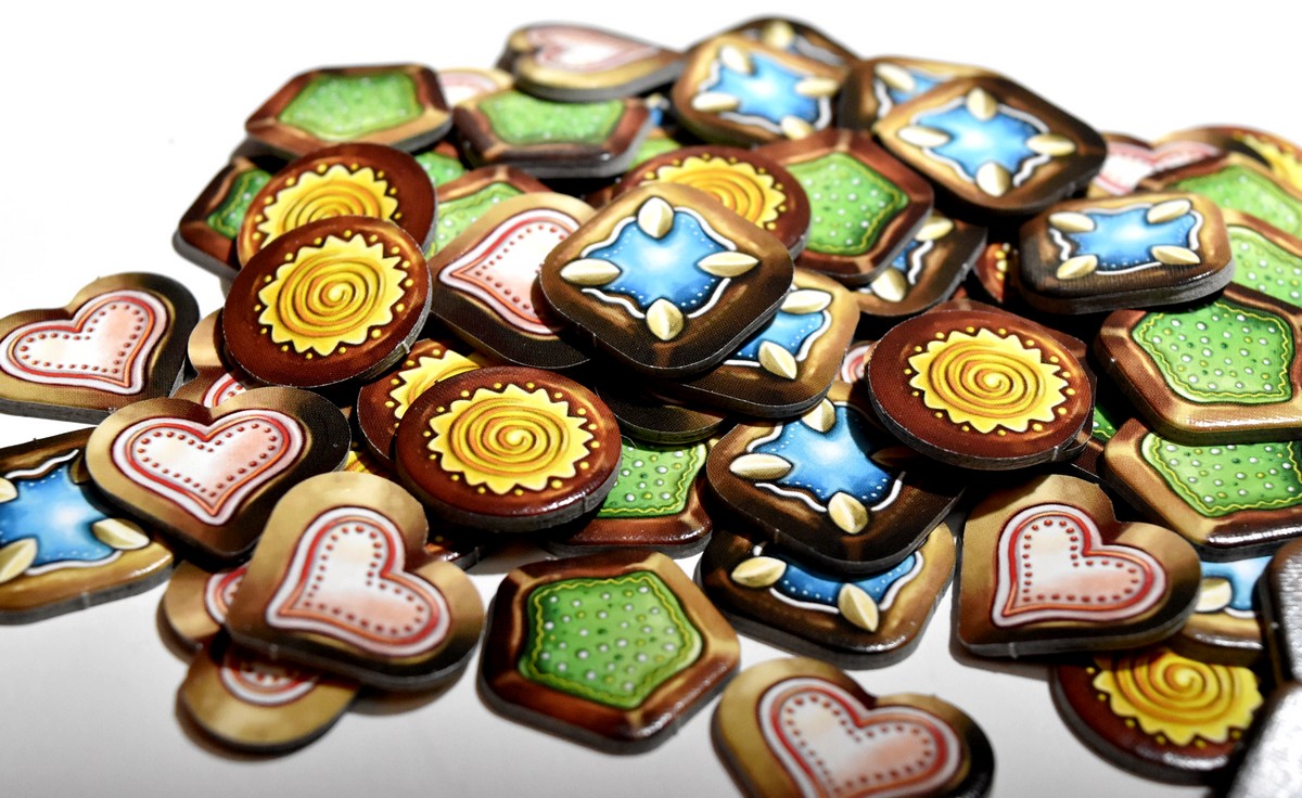 28 tuiles Joker – 22 tuiles Escalier – 72 jetons pain d’épices