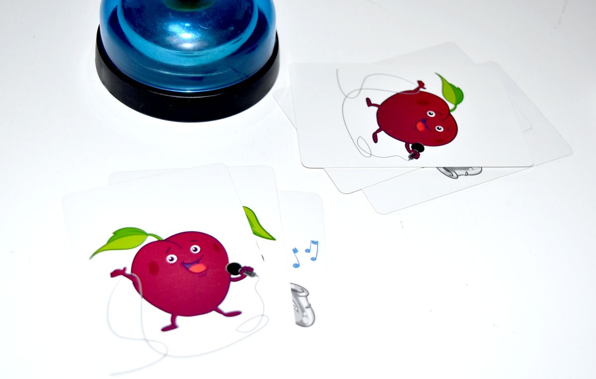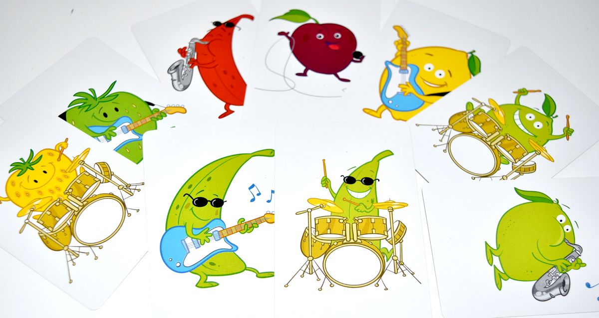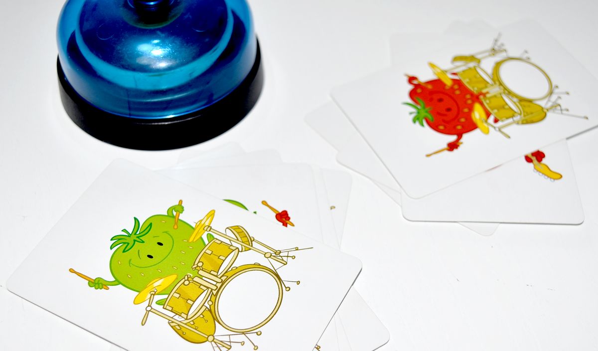 Dès que vous voyez deux cartes qui ont deux points communs, il faut être le plus rapide à taper dessus ! Vous pourrez donc taper dessus si les deux fruits sont identiques et de même couleur, s’ils ont le même instrument et la même couleur, s’ils ont le même instrument et que ce sont les mêmes fruits. Bref taaaaapez dessus !