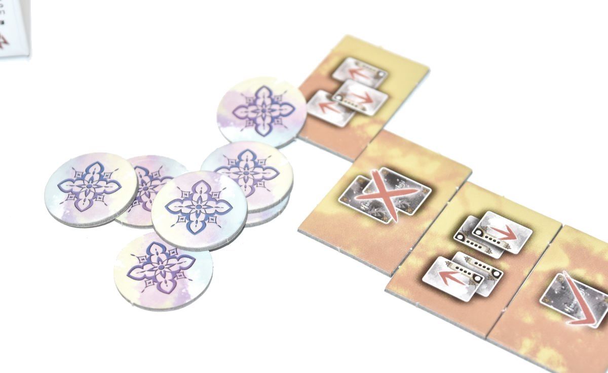 – Vérification du score : Chaque joueur révèle sa carte Secret, et la place devant la Geisha correspondante. On compare ensuite le nombre de cartes objets devant chaque joueur. Le joueur qui en possède le plus, fait venir la Geisha dans son salon de thé et déplace le jeton Art de son côté tout en le laissant sur la Geisha. En cas d’égalité, personne ne récupère le jeton. Mais attention, ce jeton reste sur la Geisha, du côté du joueur qui l’a récupéré, mais il peut basculer chez l’autre joueur en cas de majorité dans une autre manche.