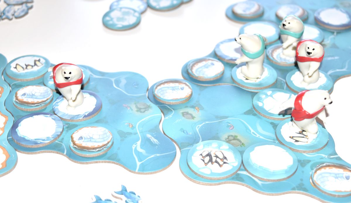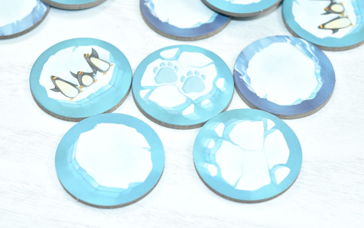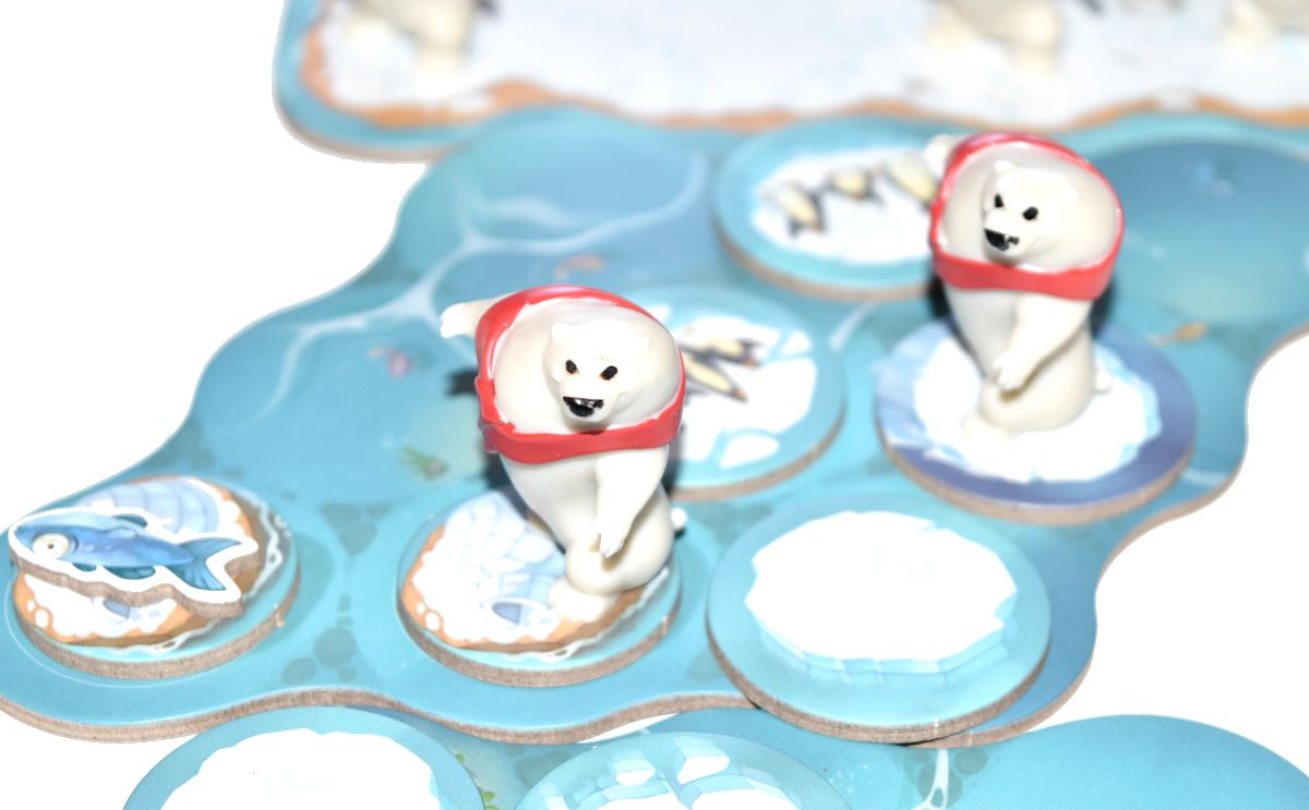 Mais les tuiles pingouins seront aussi très utiles ! Si votre ours finit son déplacement sur une case pingouins, il pourra congeler plusieurs poissons pour les mettre définitivement à l’abri du vol de l’adversaire en fonction du nombre de pingouins présents sur la tuile.