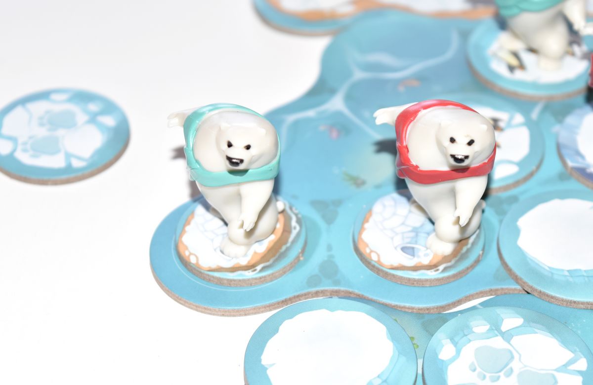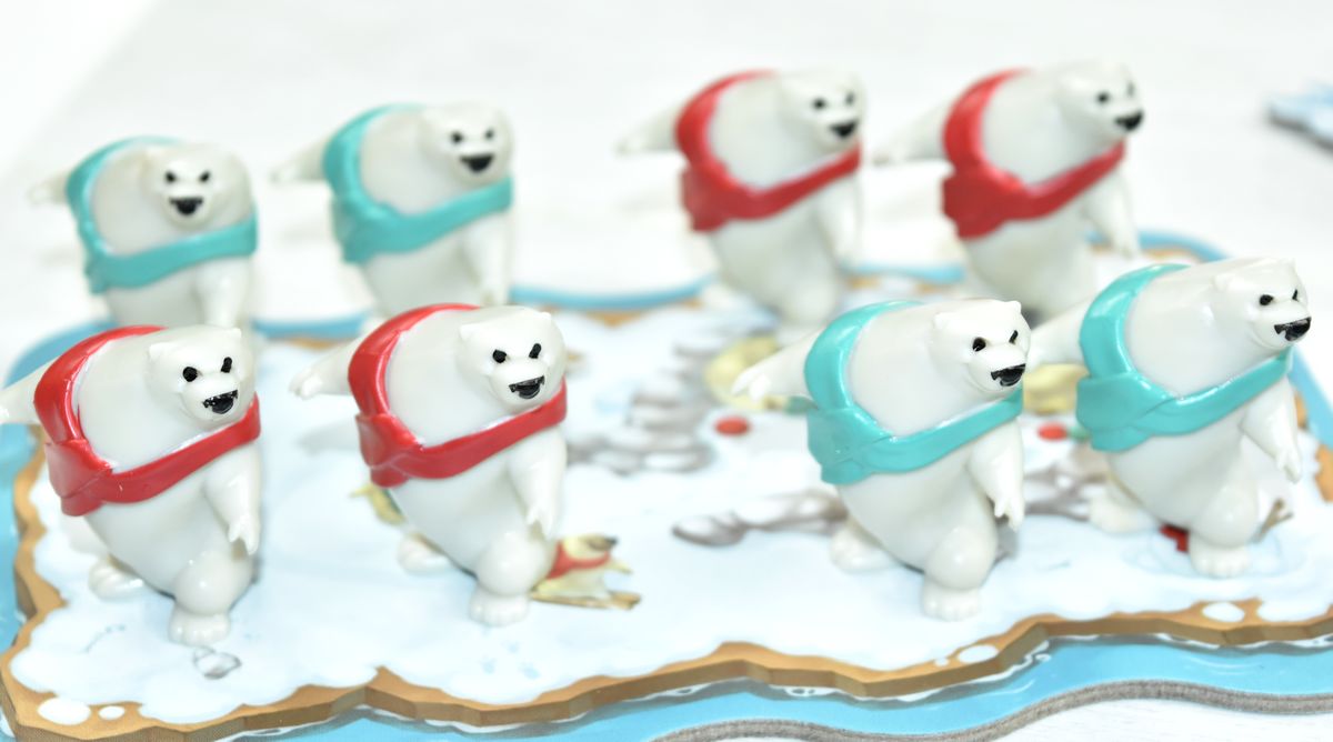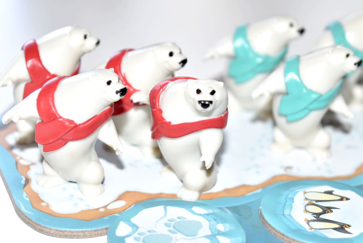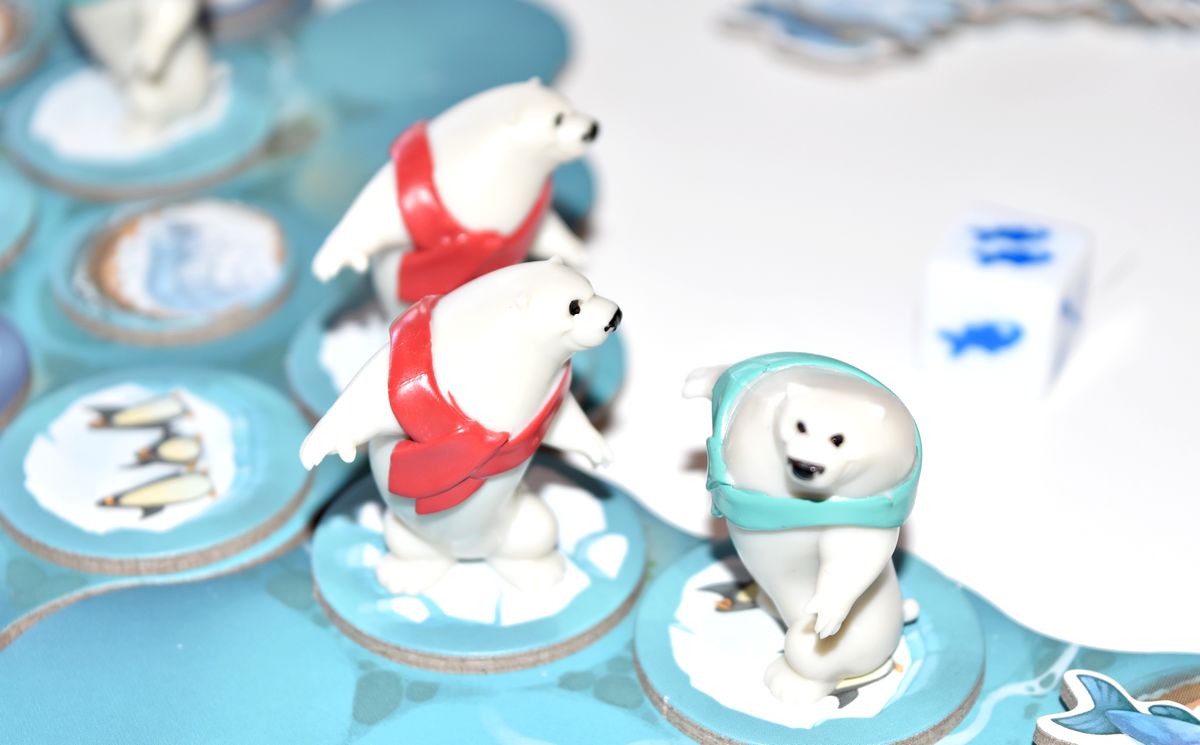 Il va falloir gérer correctement ses déplacements pour ramasser du poisson, mais aussi pour les congeler. Parce que tant qu’ils ne sont pas congelés, votre adversaire peut vous les subtiliser. A savoir que la victoire peut se jouer jusqu’au bout, puisque dès qu’un ours franchit la ligne d’arrivée, les dés sont relancés et le joueur peut en choisir un pour gagner encore du poisson ! Alors si un joueur apporte ses 4 ours à l’arrivée, pendant que l’autre n’en amène que deux ça peut faire vite mal !