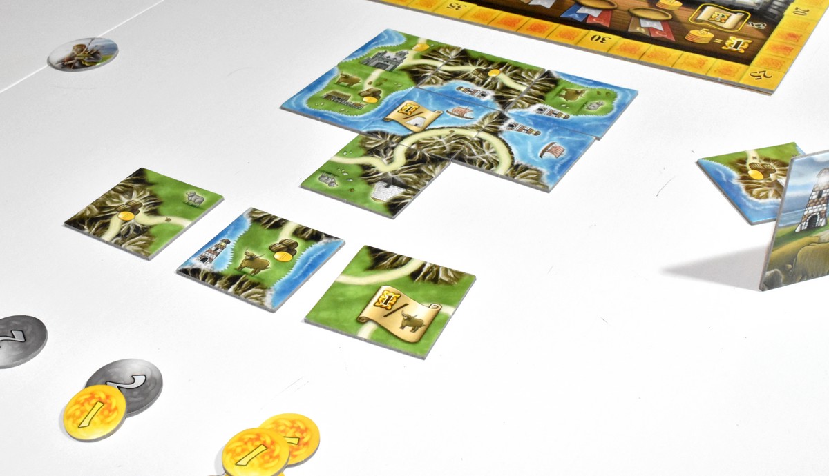 Aux premiers abords, on se retrouve clairement face à un Carcassonne revisité. Mais dès les premiers tours, on se rend compte que la mécanique est quelque peu différentes. Au début, on se verra faire en sorte que les tuiles poursuivent leur chemin, comme c’est le cas dans Carcassonne. Alors qu’au final, ici il n’y en a pas spécialement besoin.