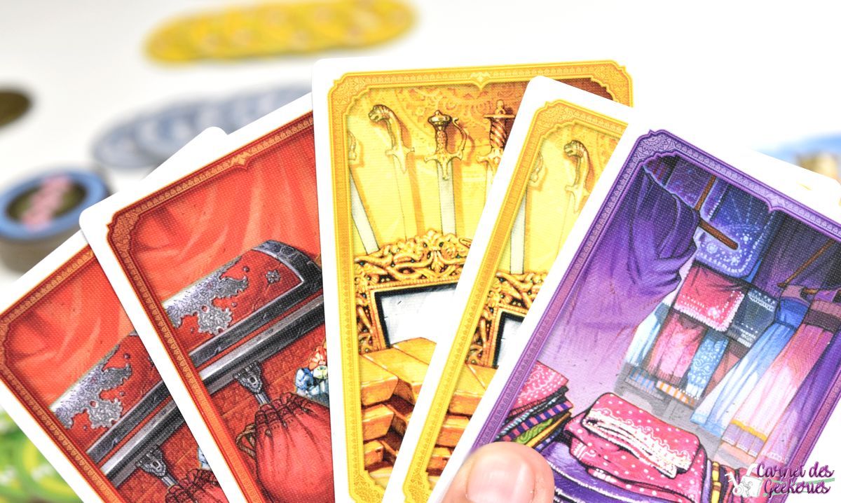 Alors oui, dans Jaipur, on a un petit côté hasard bien présent avec la pioche, qui peut être parfois bien plus avantageuse pour le 2ème joueur et inversement. On ne contrôle pas le marché, loin de là ! Et parfois, ça peut être très frustrant ! Après, ce n’est pas parce qu’un joueur vendra les cartes rouges et or, qu’il l’emportera forcément ! Il faut être malin, et souvent les chameaux permettront de faire de jolis coups pour récupérer des marchandises qui nous intéressent. Et comme tout ne se joue pas en une seule manche, on a le temps d’inverser la balance en notre faveur.