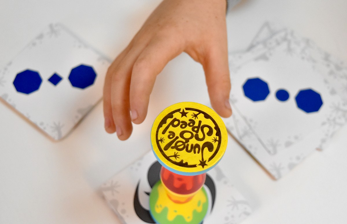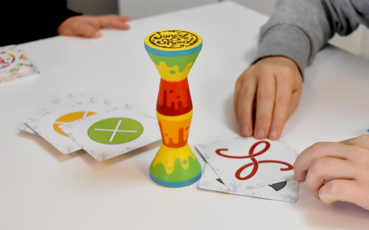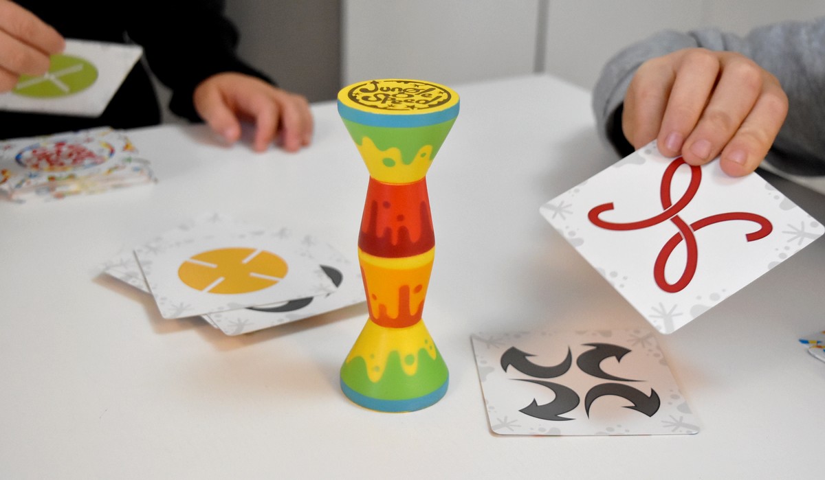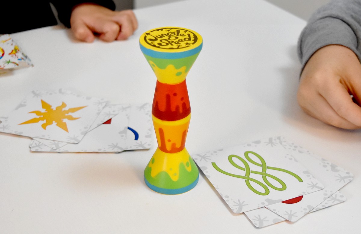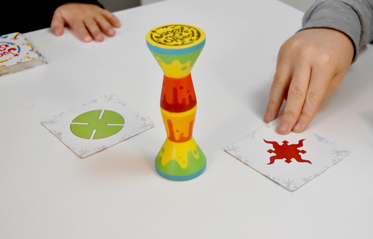 Au programme, avec Jungle Speed, on a un jeu d’analyse, de rapidité, mais aussi et surtout de dextérité ! Ici, pas le temps de réfléchir, il va falloir agir très vite ! Même si avec la rapidité, on peut très vite le payer en récupérant les cartes des autres !
