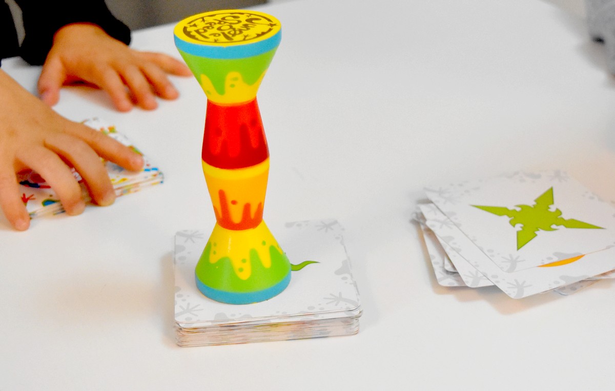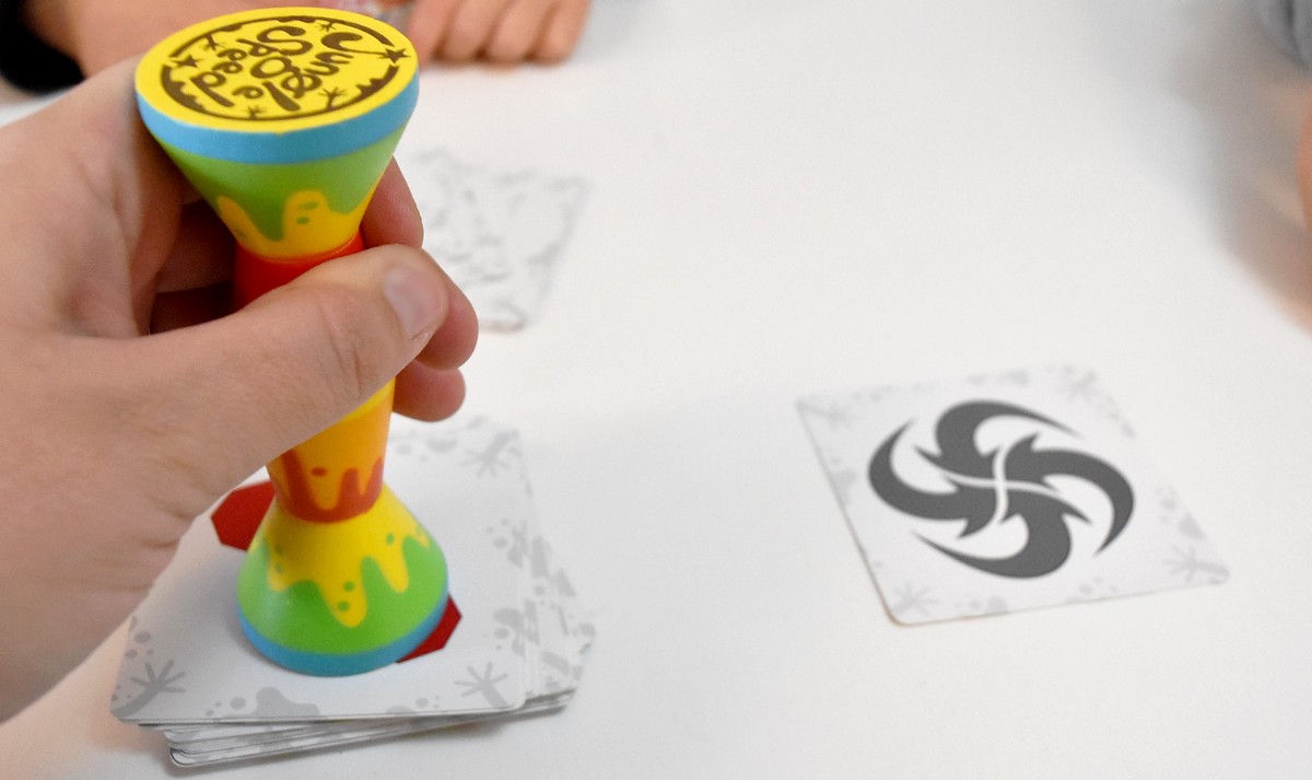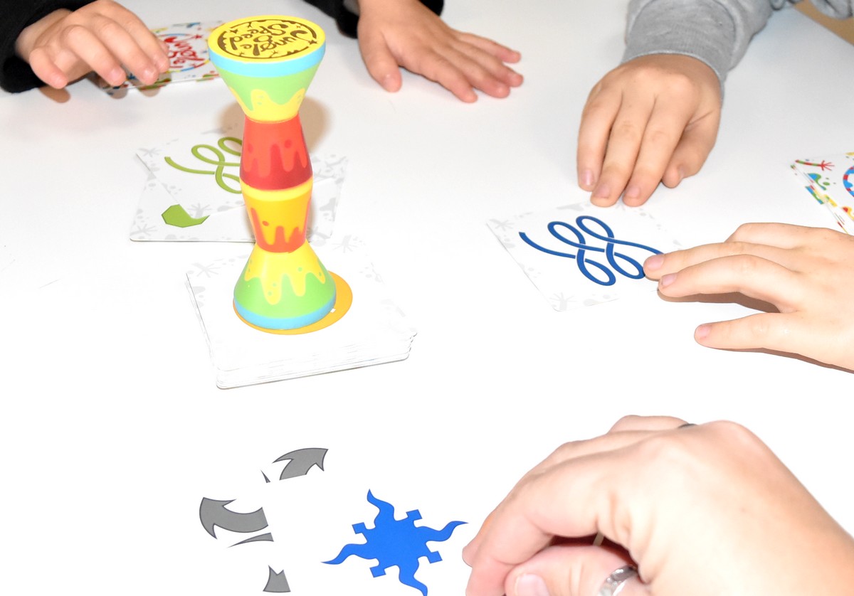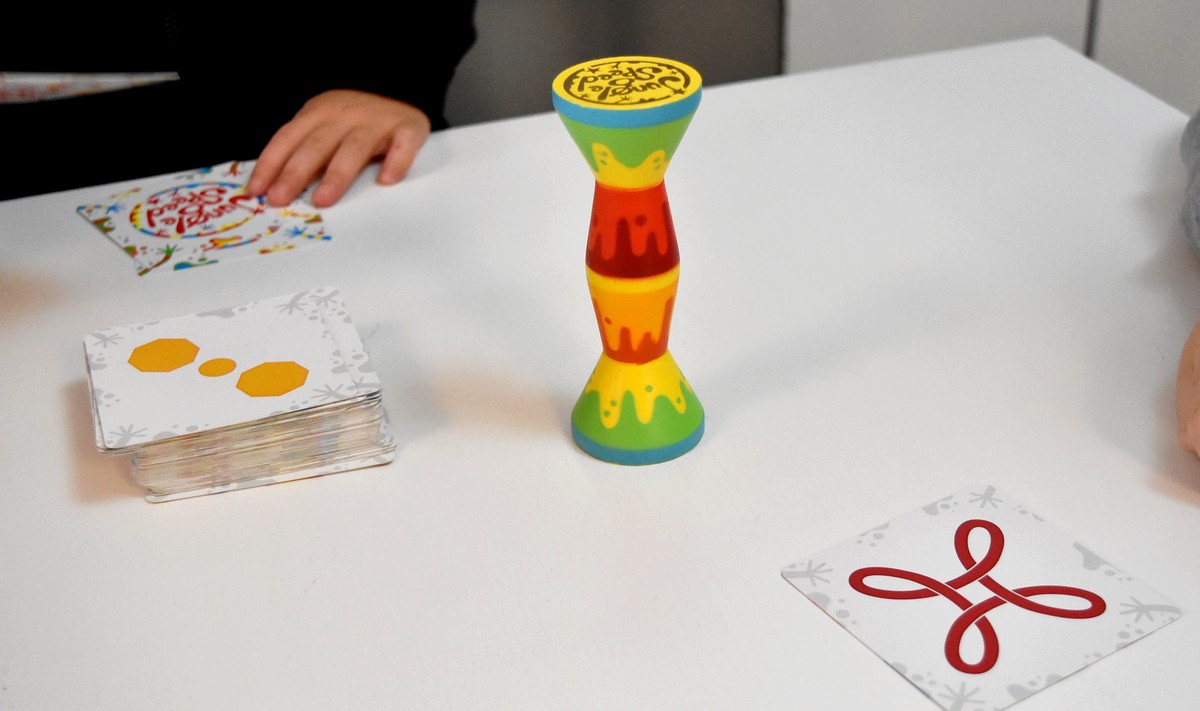 Chaque joueur dévoile l’une de ses cartes, toujours par le côté extérieur, et surtout ne doit se servir que d’une seule main pour jouer ! Les tours s’enchaînent ainsi, les cartes se dévoilent une par une, jusqu’à ce que deux joueurs doivent effectuer un duel. Dès que deux dessins sont identiques, peu importe la couleur, le duel s’enclenche ! Et pour gagner ce duel, il faut être le premier à attraper le totem au centre de la table. Bien évidemment, les autres joueurs n’interviennent pas.