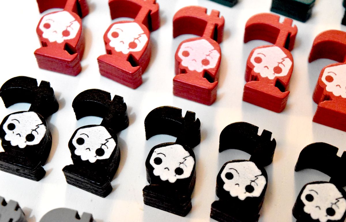 Les tours s’enchaînent ainsi jusqu’à ce qu’un joueur ait placé son 4ème pion Petite Mort ! Le tour se finit alors et la partie prend fin avec ce joueur gagnant. Mais en cas d’égalité, on prendra en compte les points d’âme engrangés dans son cimetière.