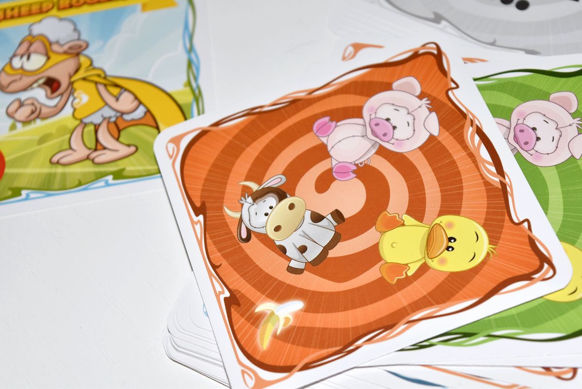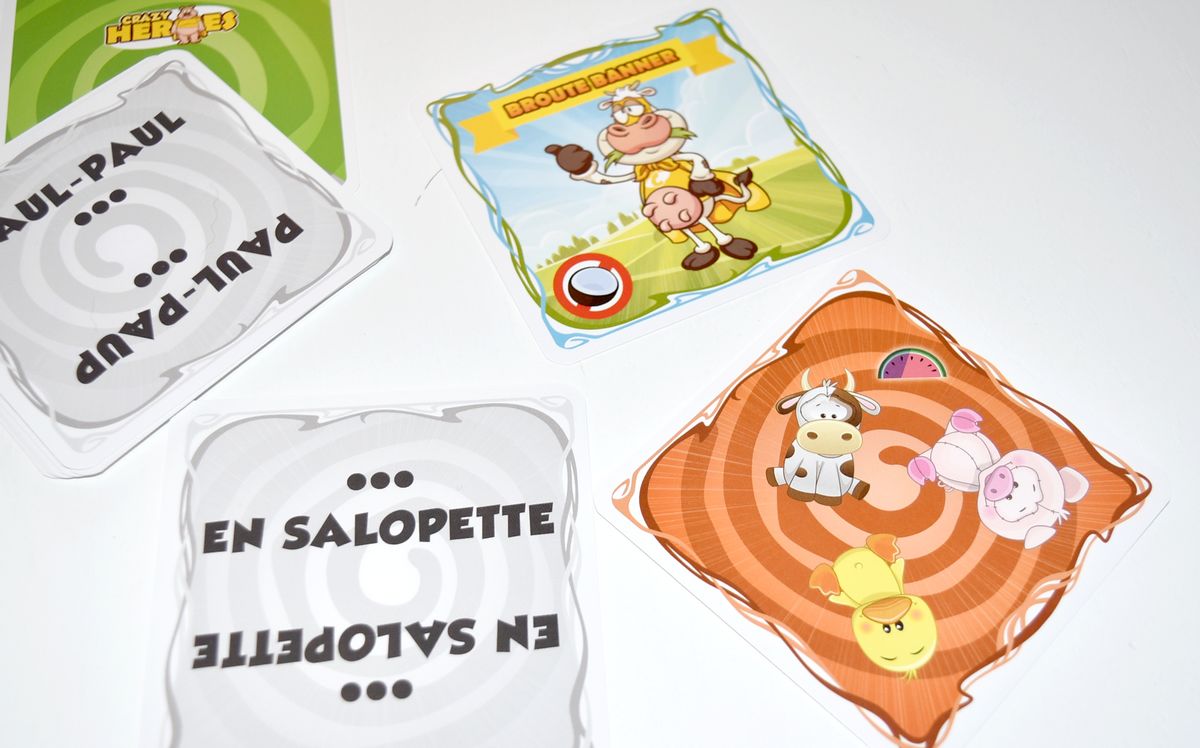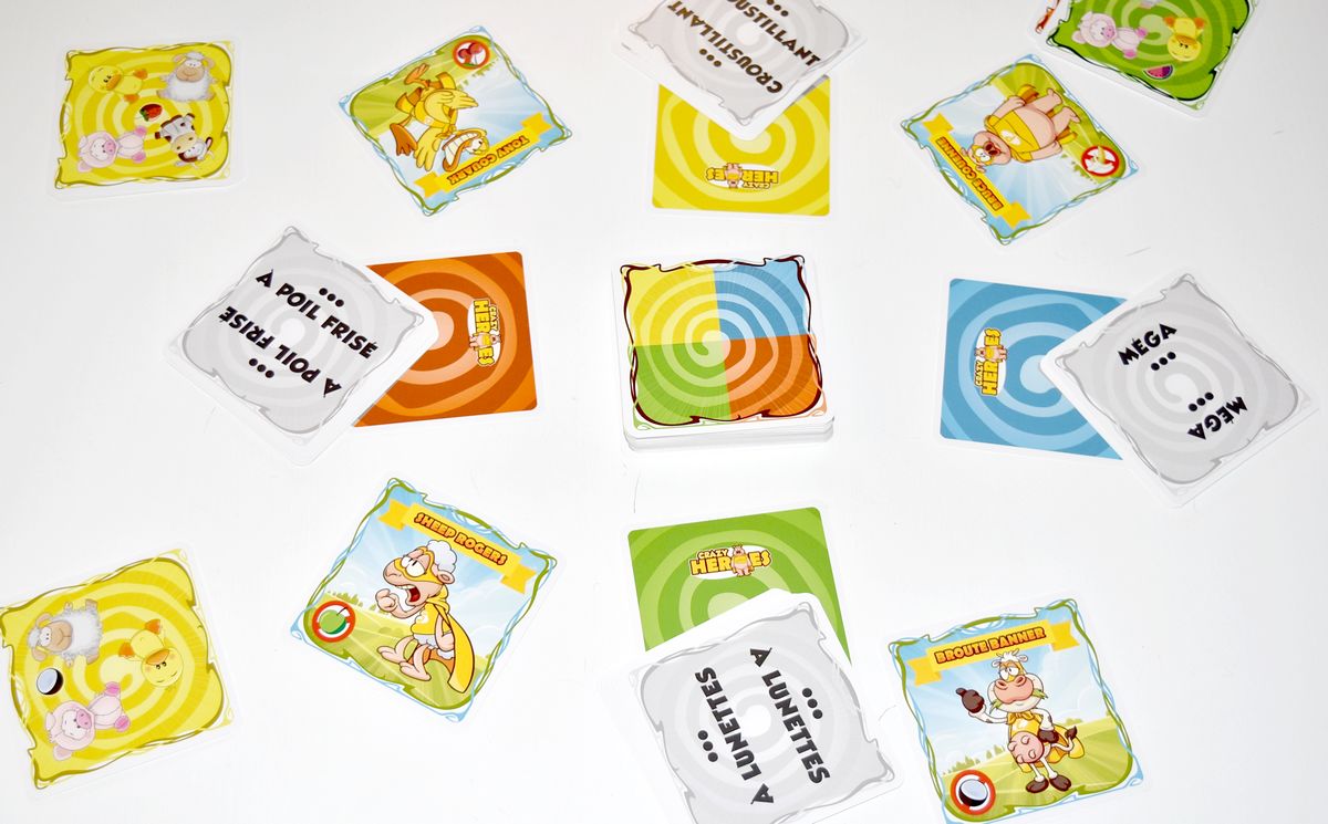 Contenu du jeu : 4 cartes support – 50 cartes animaux – 28 cartes cris – 6 cartes changement de cris – 8 cartes super héros