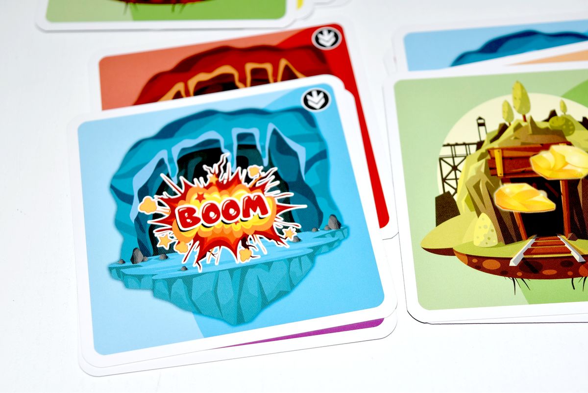 Si le joueur dévoile une carte Boom, il perd toutes ses cartes et les défausse dans la boîte du jeu. Mais si la pile est épuisée, ou qu’il décide de stopper ses recherches, il poses les cartes prises devant lui en une pile.