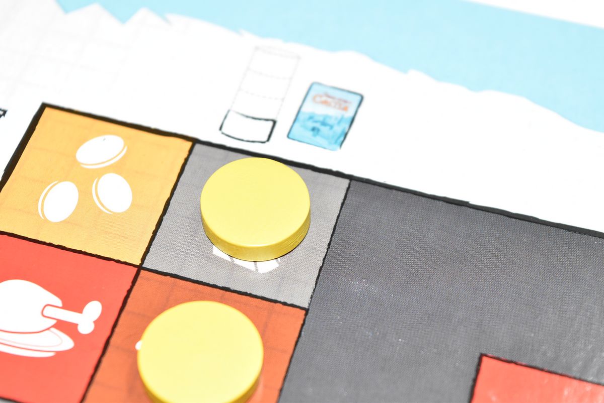 On se retrouve alors dans une version de bingo ! Puisque dès qu’un joueur a fini une ligne ou une colonne de son plateau grâce à ses jetons, il les retire et réalise la construction de son choix. Si deux lignes sont réalisées, il est possible d’utiliser les deux, mais à condition qu’en enlevant la première ligne, la 2ème reste complète. Donc pour deux lignes/colonnes qui se croisent, il faudra faire un choix.