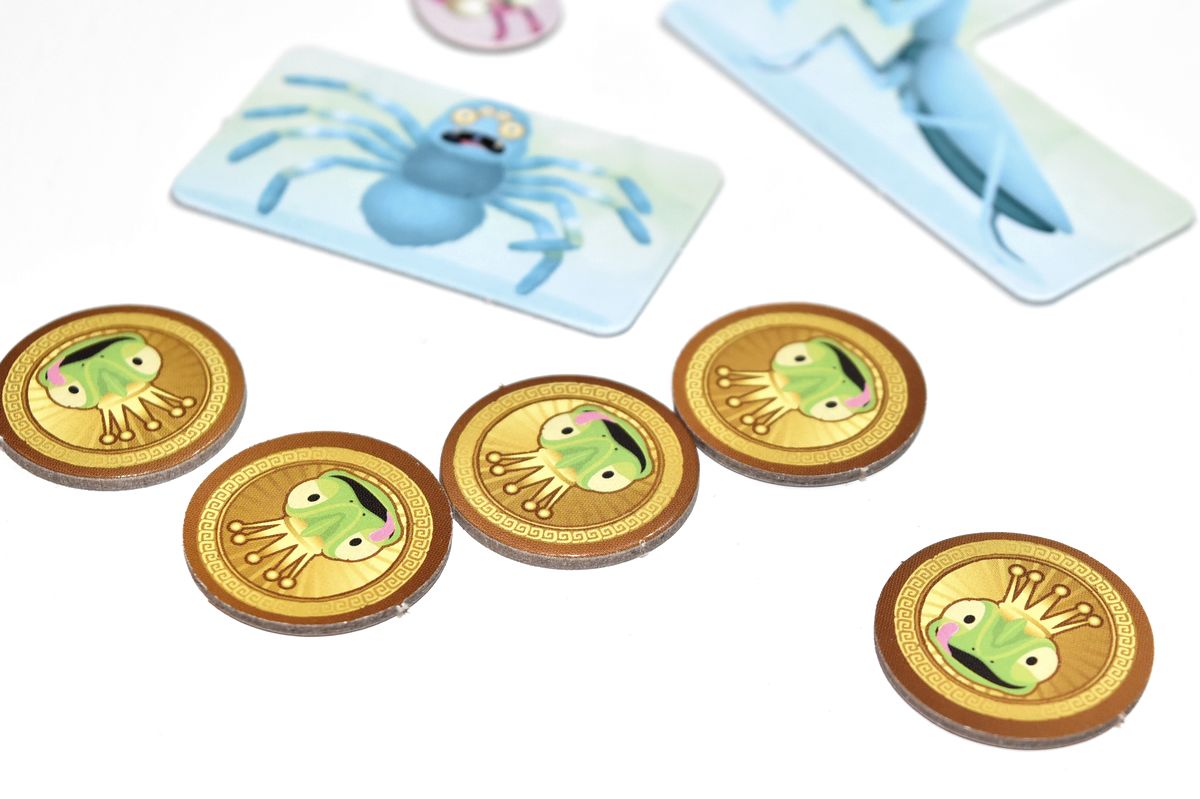 Côté matériel, deux langues supplémentaires sont fournies, en cas de casse, mais il faut surtout bien penser à les passer sous l’eau claire après avoir joué ! Petit bémol sur les pièces des insectes, peut être un peu trop fragiles, dont une s’est pliée à la première partie !