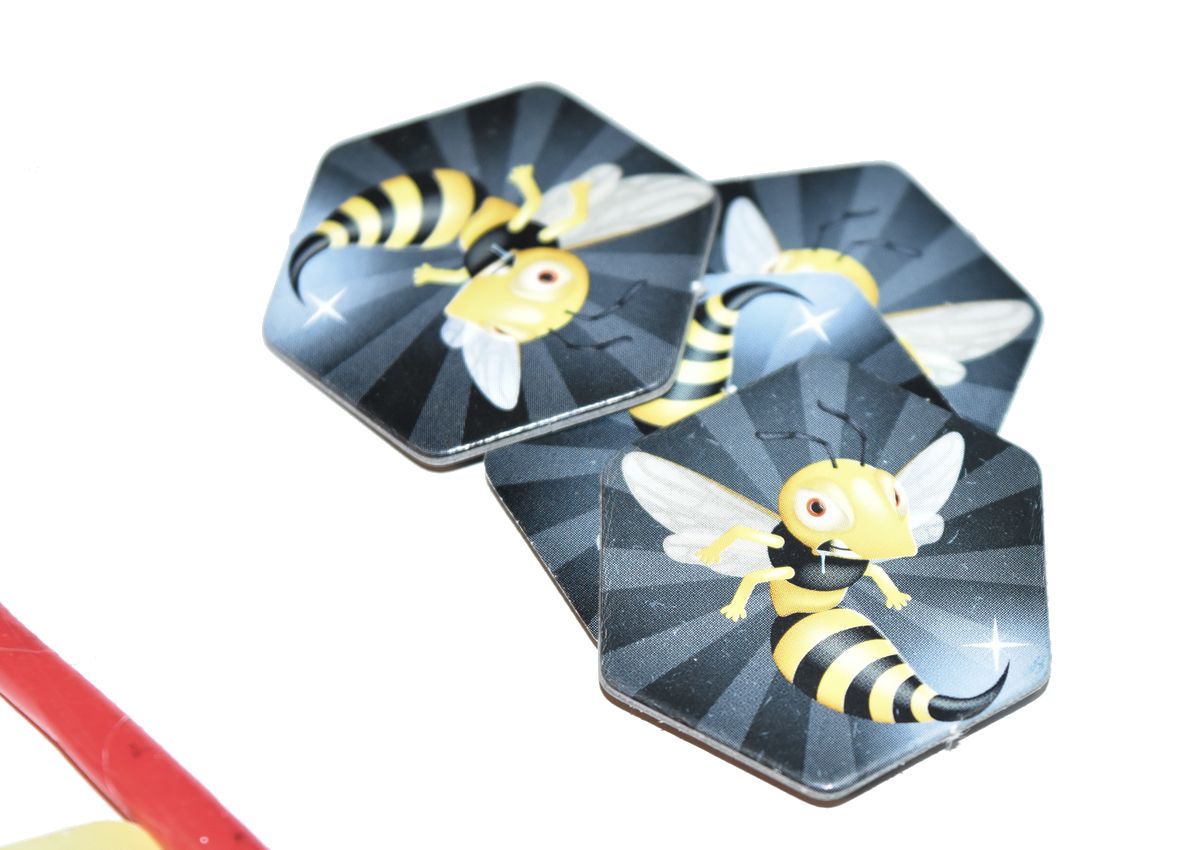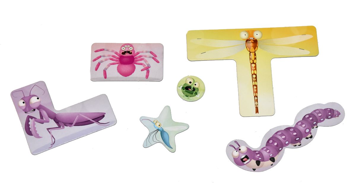 8 langues autocollantes – 5 jetons guêpe – 1 dé insecte