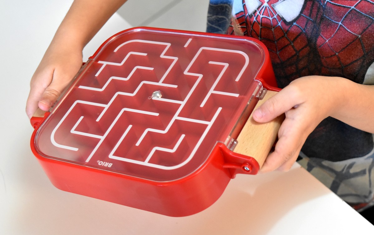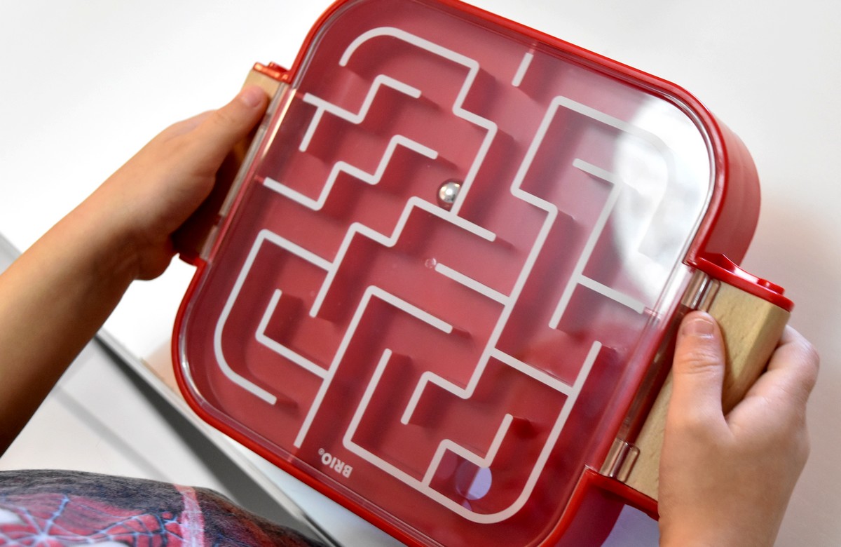 Le labyrinthe est réversible, du coup grâce aux poignées latérales, les enfants peuvent facilement le tourner et le retourner encore et encore. Du coup je l’ai fait essayé au plus jeune de mes neveux qui a 4 ans, et il a adoré ! Le retourner dans tous les sens, ça faisait un peu un parcours à l’infini et ça fonctionne vraiment bien.
