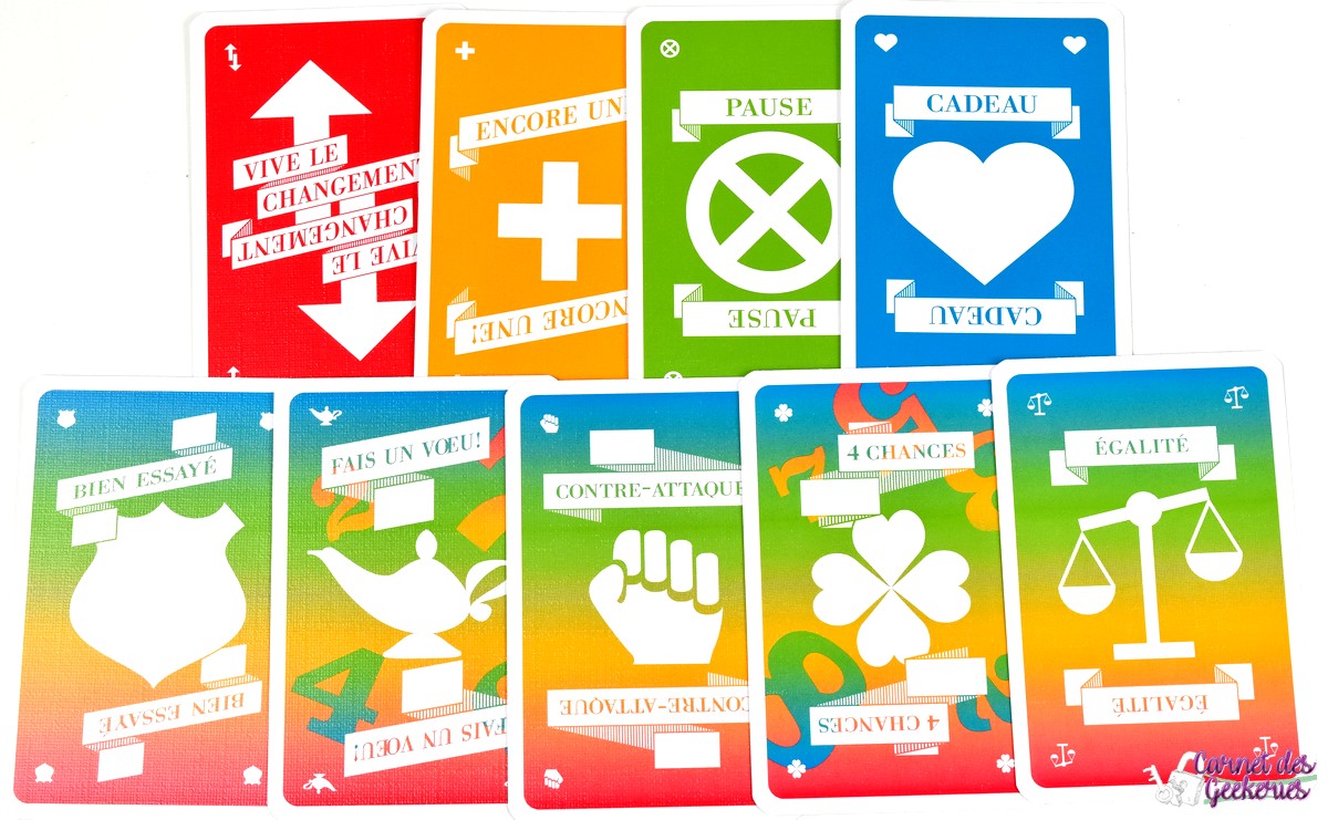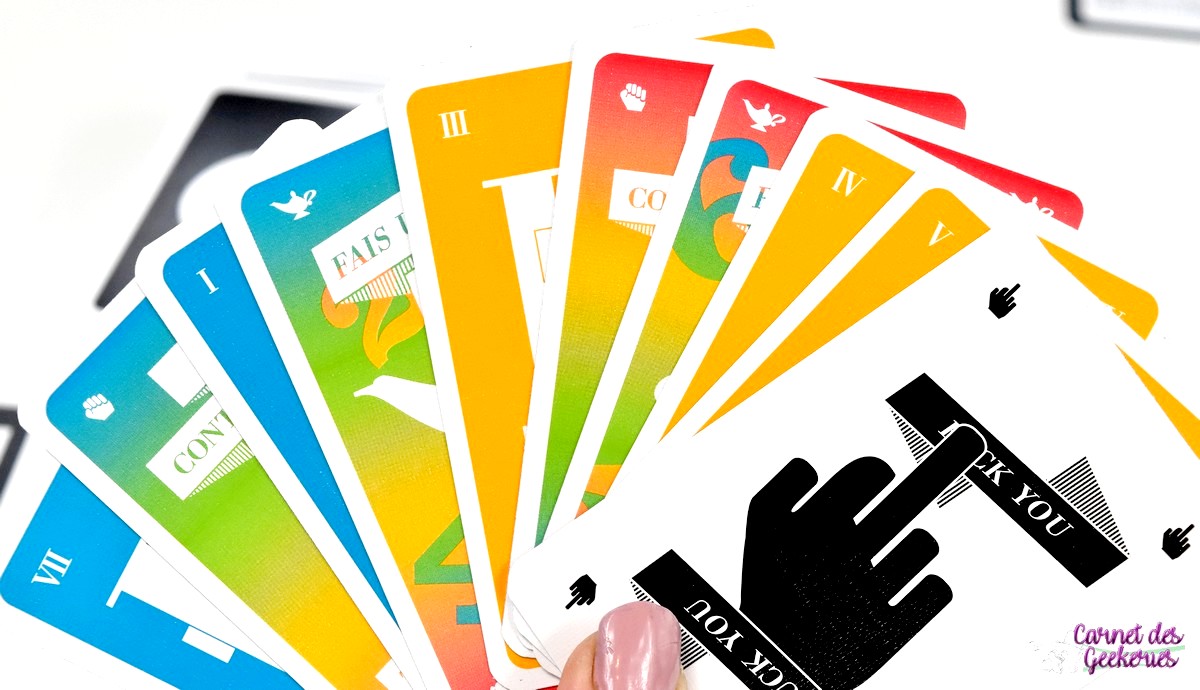 Attends… Il a parlé de cartes blanches, là ? ! Mais il y a combien de couleurs de cartes dans ce jeu ?