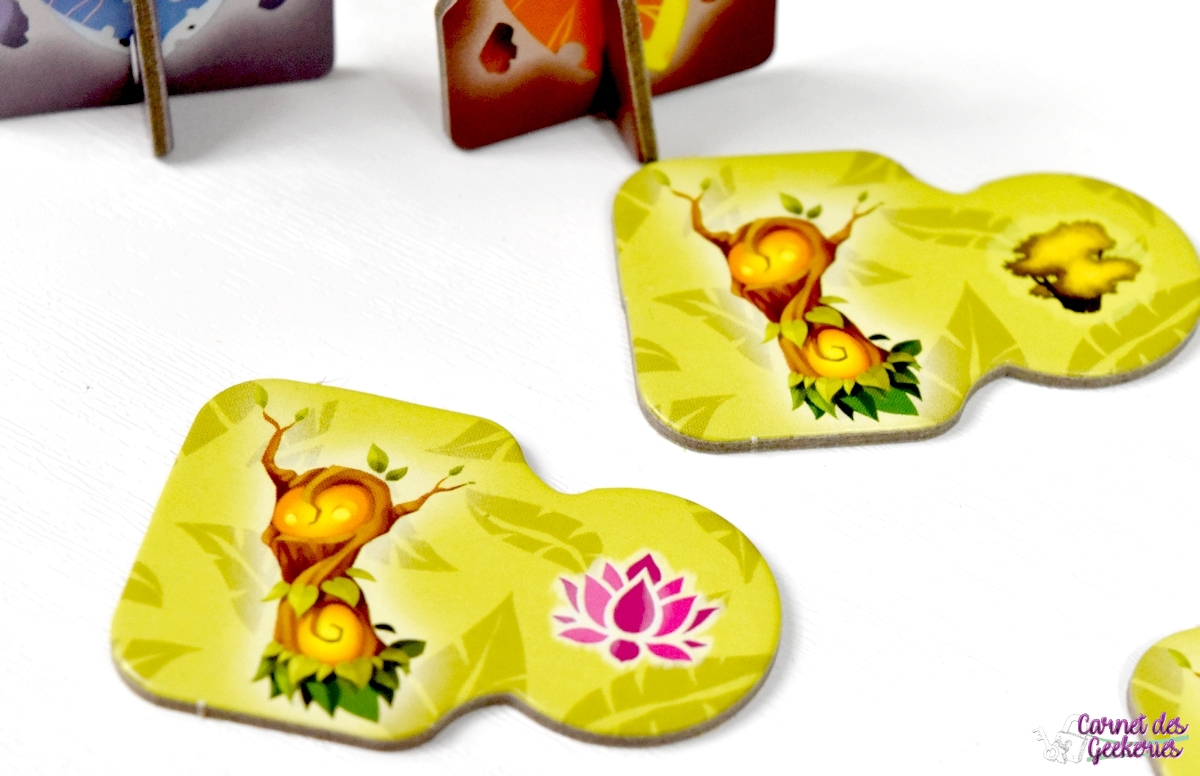 Plus qu’à compléter la réserve d’animaux gardiens si besoin, à remettre les ligne d’aide de chaque joueur dans leur défausse personnelle et à donner l’arbre sacré au joueur suivant avant de commencer une nouvelle manche.