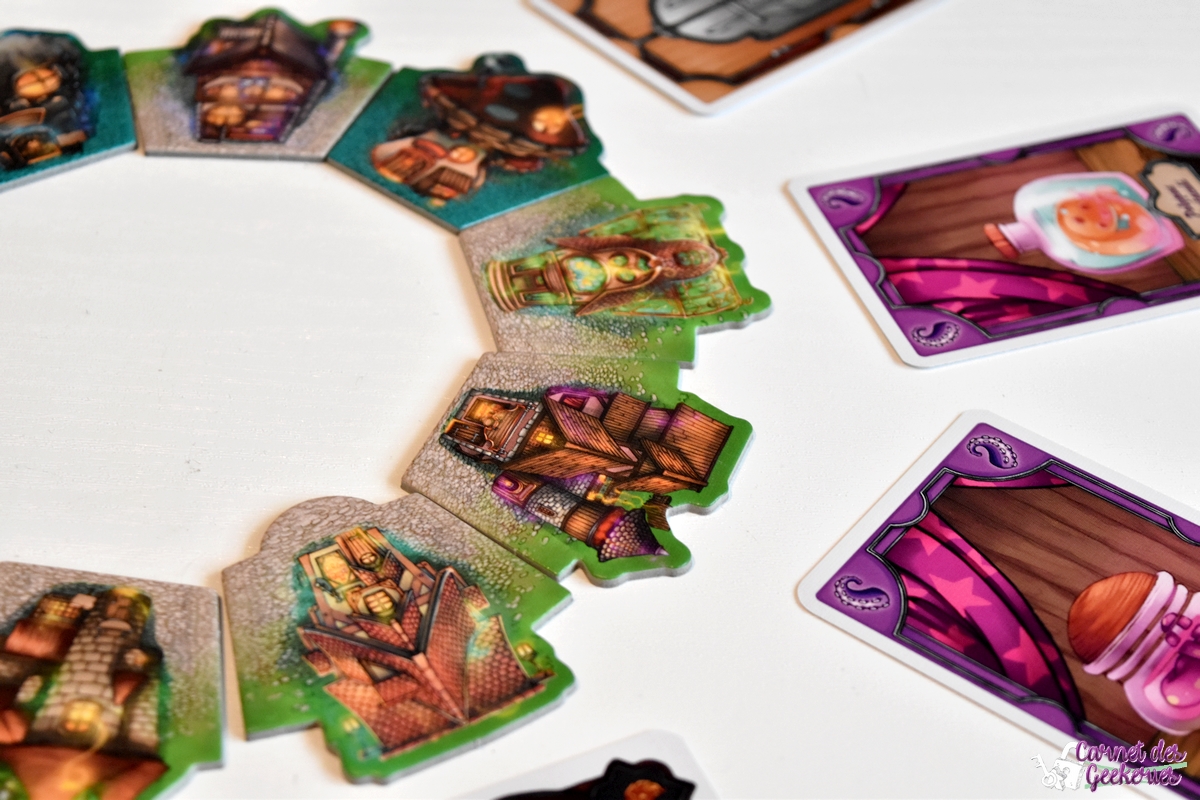 On retrouve ainsi une petite touche de stratégie pour savoir quels risques sont à prendre, si on prend plus ou moins de cartes pour mieux scorer avec les grimoires, bref, il y a de quoi faire sans aucun doute ! Mais honnêtement, vous ne pourrez rien prévoir à long terme, parce qu’avec les autres sorcières, les sortilèges vont rapidement bouger !