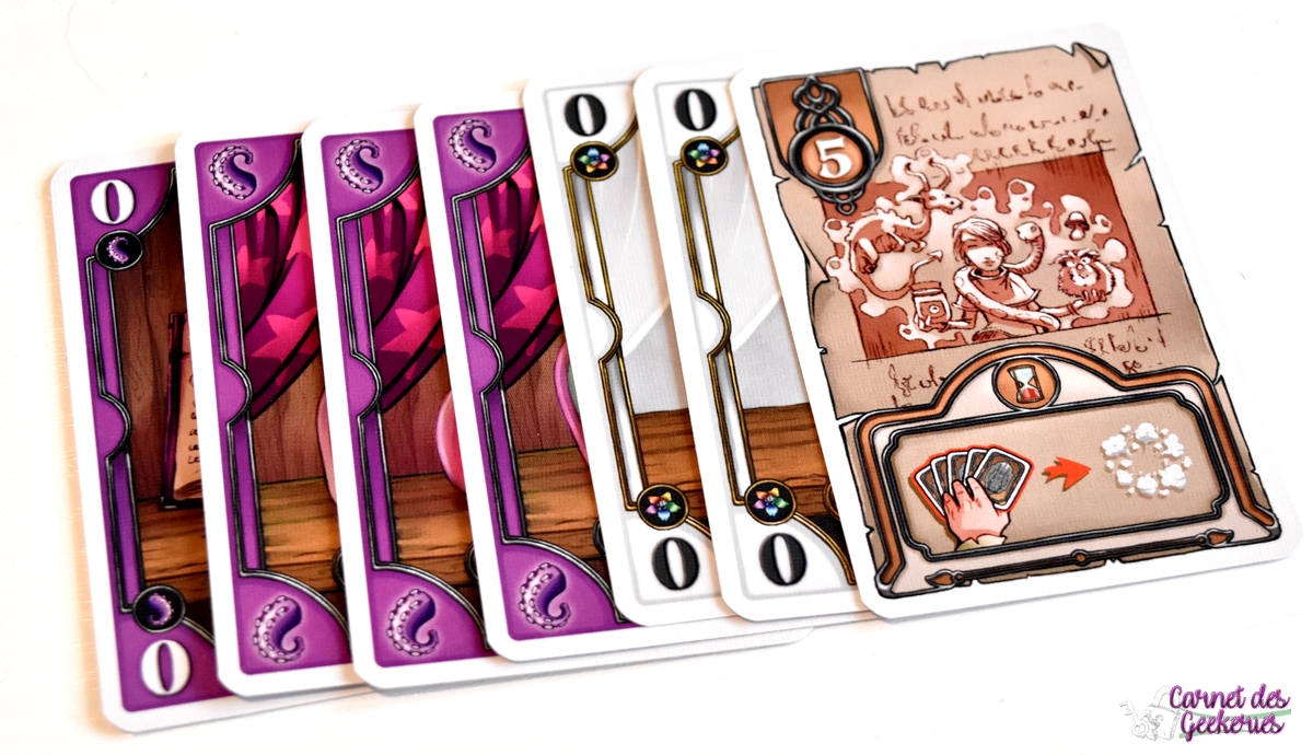 A savoir, que les cartes Magie Noire vous demanderont d’utiliser les ingrédients de couleurs toutes différentes, et que les mandragores seront des jokers pour remplacer un ingrédient ou un grimoire dans la limite d’une seule par sortilège 😉