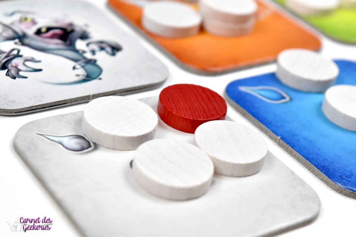 L’interaction est quasi inexistante aussi. De temps en temps, vous regarderez ce que font vos adversaires pour leur prendre des tuiles qu’ils auraient besoin, mais tout en évitant de vous désavantager quand même au passage ! A 2 joueurs, on aura déjà un peu plus de recul sur les tuiles. On pourra anticiper un peu les positions des tuiles, vu qu’on en prendra au moins 2 dans chaque rivière. Mais honnêtement sur les parties faîtes, j’ai pas vraiment cherché à anticiper, mais plutôt à libérer rapidement mes pions accord !