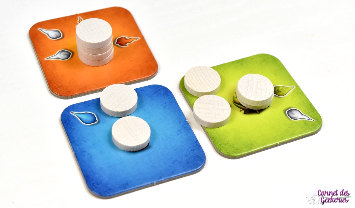 C’est clairement ce qui vous attend dans Sagani. Parce que tout au long de la partie, vous allez constamment réfléchir à vos placements de tuiles, tout en devant rester prudent pour conserver des pions Accord et ne pas devoir prendre des jetons Cacophonie.