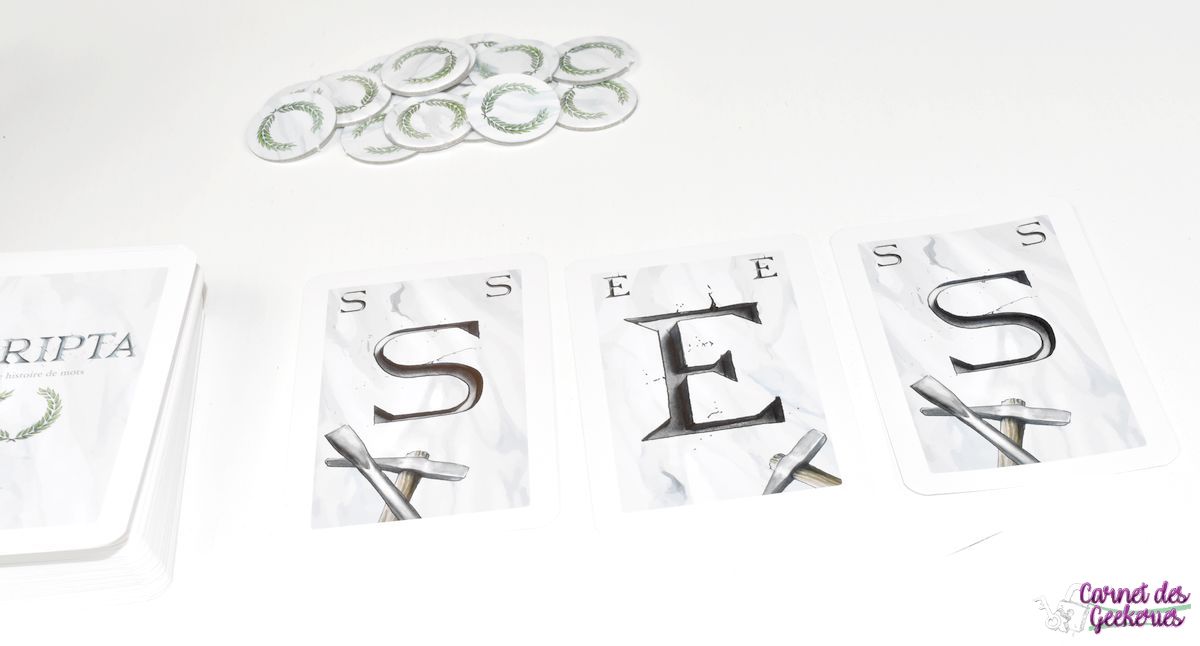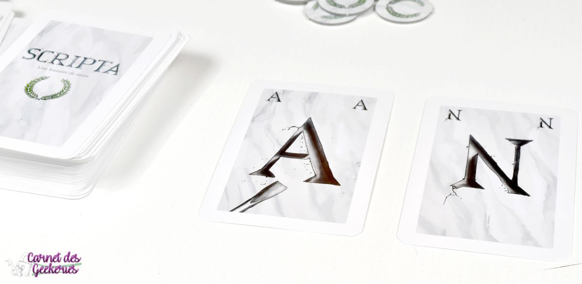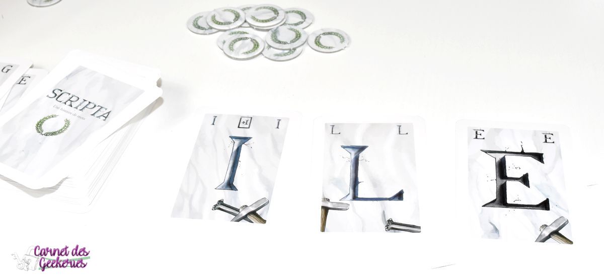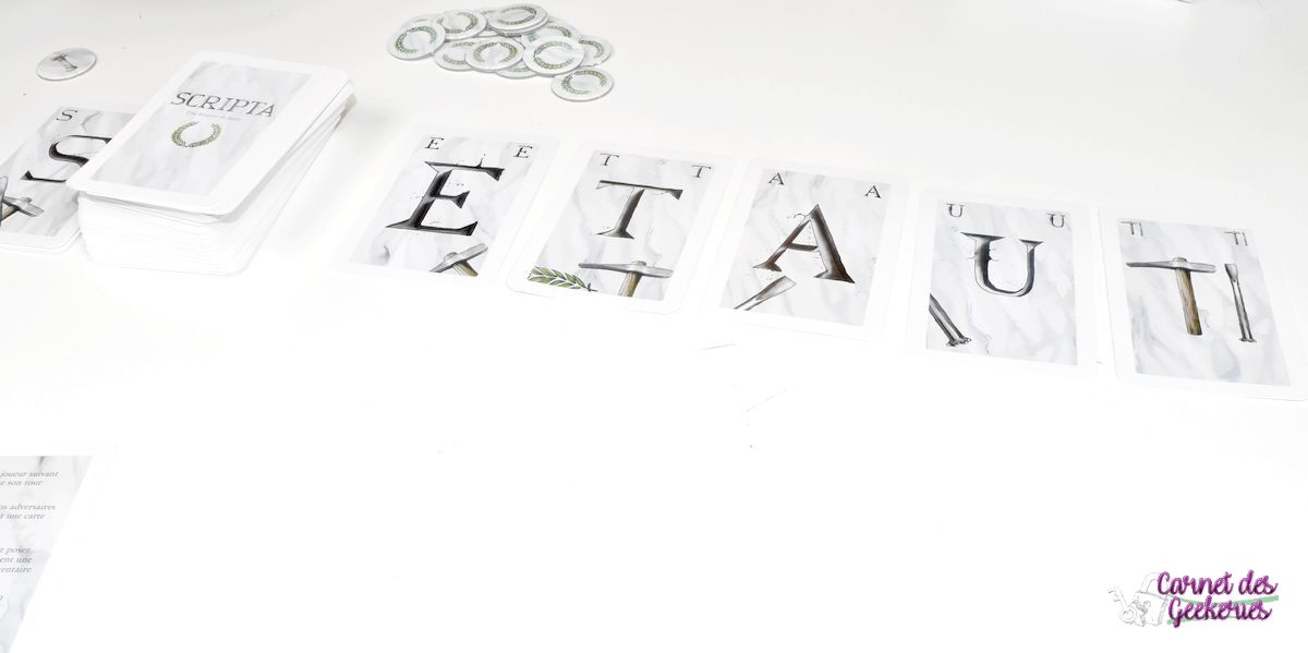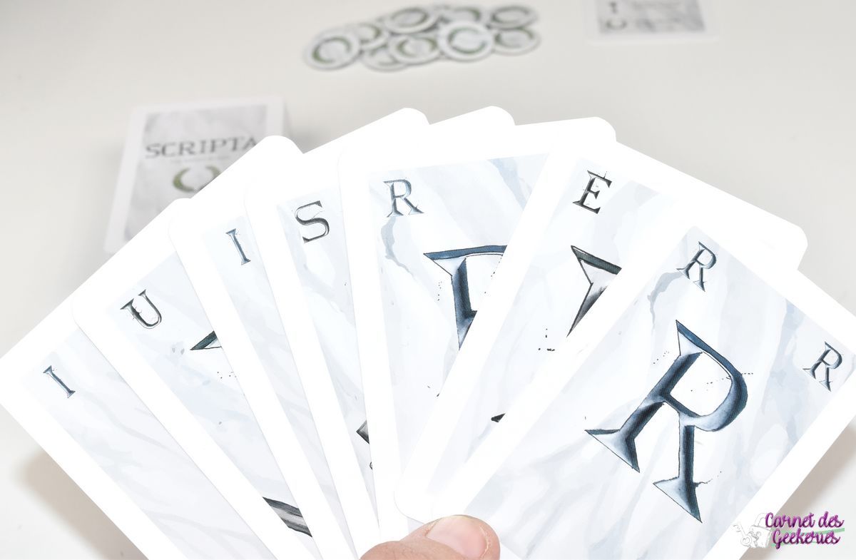 Dans Scripta, il va falloir trouver les mots au fur et à mesure en les construisant avec vos cartes.
