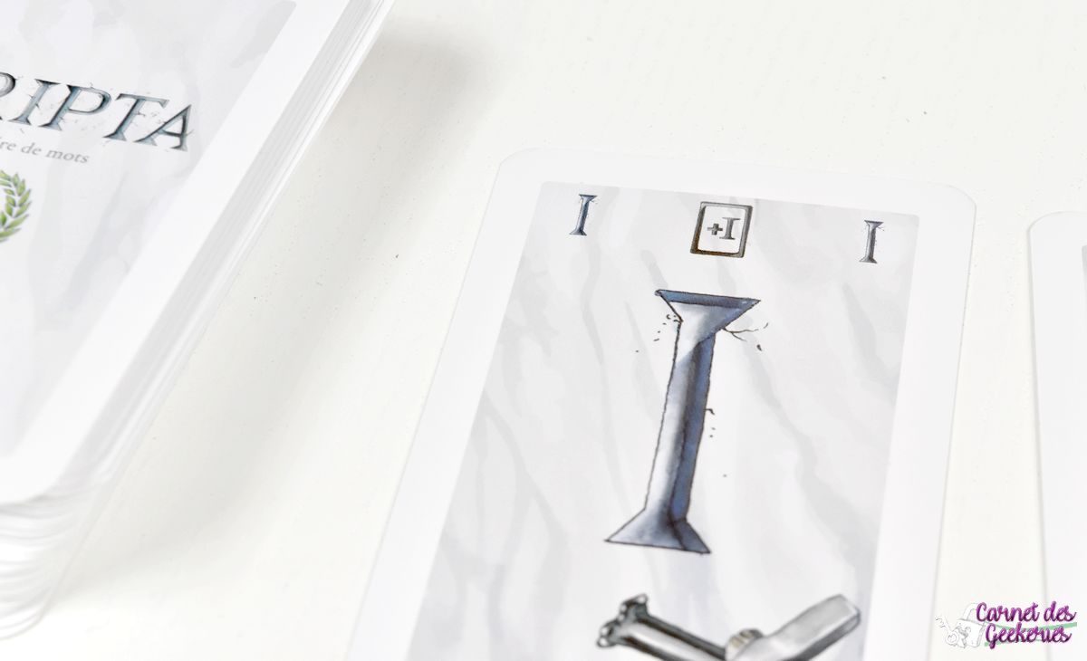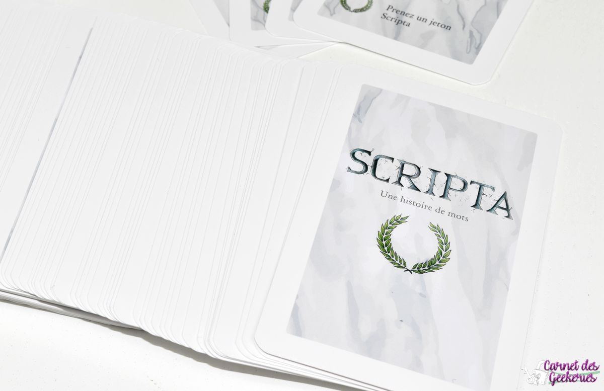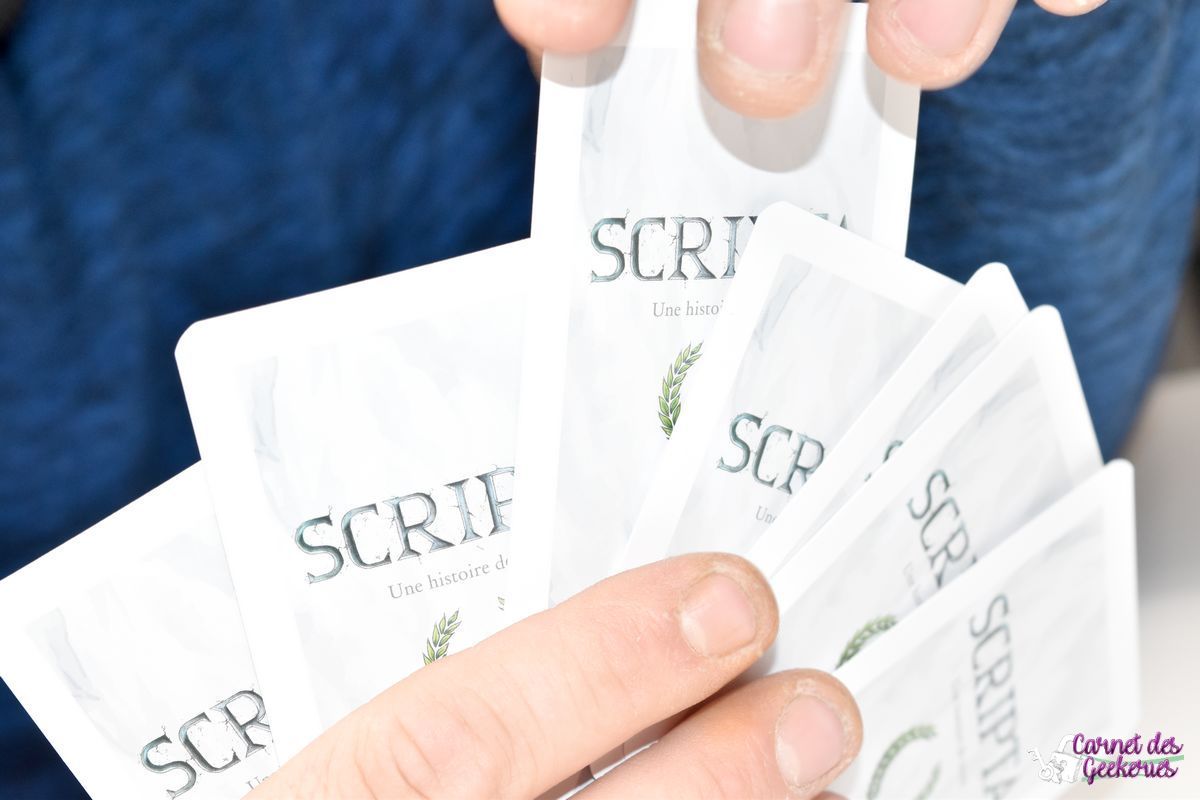 Certaines cartes ont des effets qui pourront être bien utiles, comme forcer le joueur suivant à passer son tour, faire piocher une carte aux autres, poser une deuxième carte, récupérer un jeton Scripta ou reprendre le jeton 1er joueur.