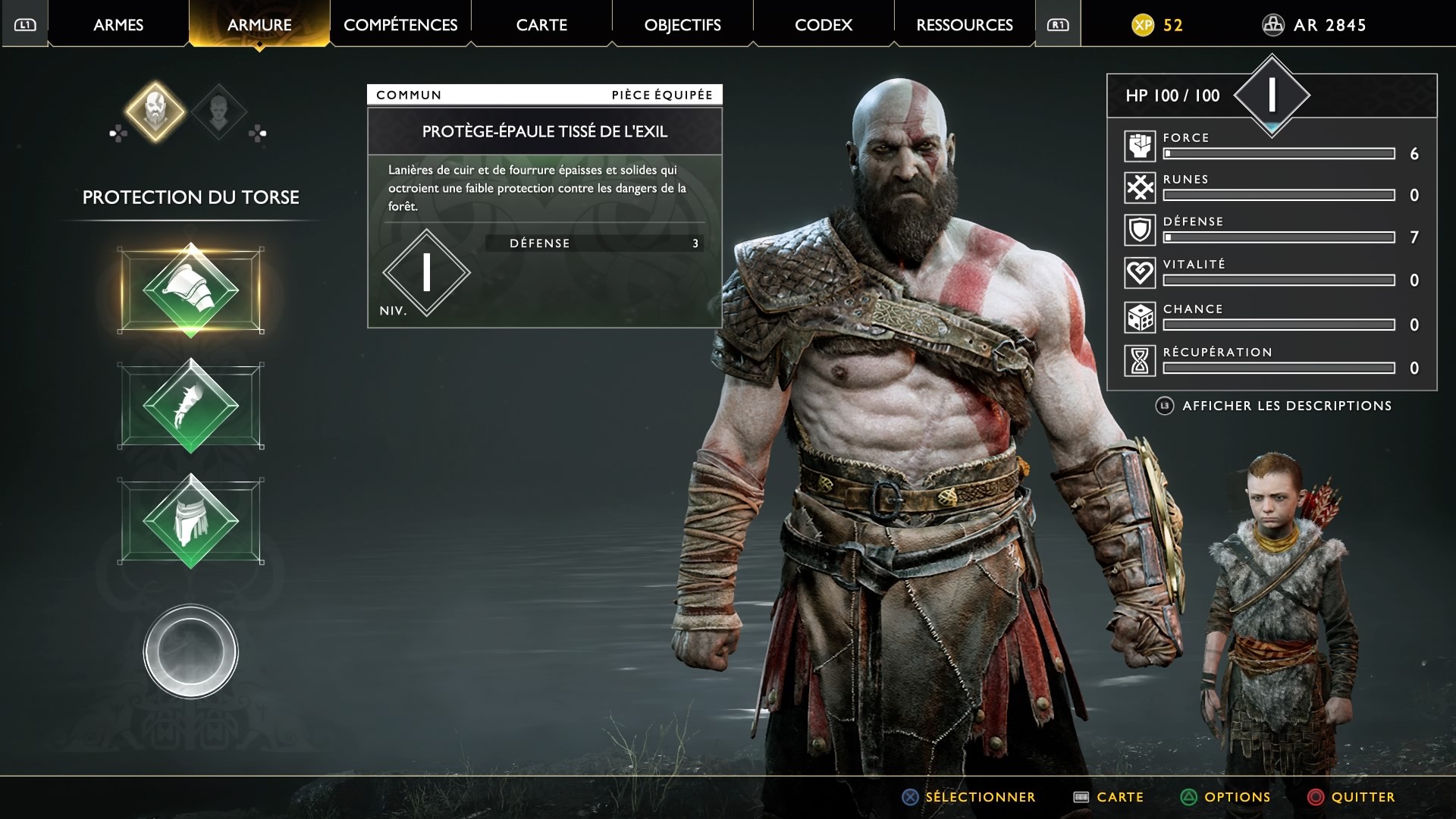 Autre nouveauté, la personnalisation des armures et le craft ! Tout au long de votre voyage, vous trouverez des pièces d’équipements pour améliorer vos personnages ainsi que divers éléments vous permettant de fabriquer ou d’améliorer votre équipement dans les ateliers que vous trouverez sur votre route ! Il y a une composante légèrement RPG dans ce God of War. Et comme pour les anciens jeux de la saga, vous gagnerez de l’expérience que vous pourrez utiliser pour débloquer de nouvelles capacités / techniques pour Kratos et Atreus. Et dernier point, la difficulté, le jeu propose plusieurs modes et autant vous dire qu’en difficulté « défi » (le mode difficile), il y a un sacré challenge ! Mais il y a aussi un autre mode au dessus nommé « God of War » où la difficulté est extrêmement corsée ! Un peu à la façon des jeux Dark Soul !