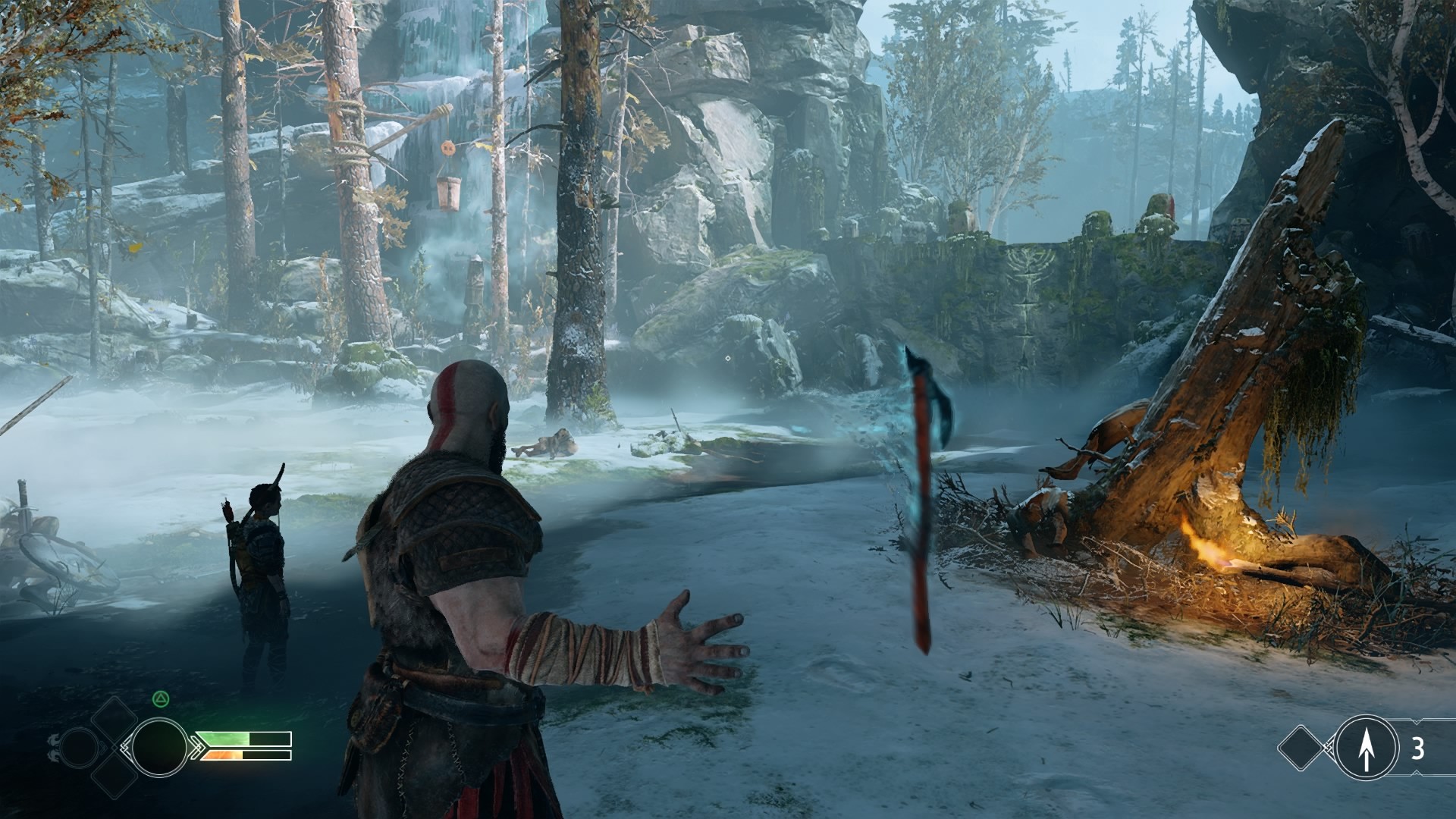 La plus grosse nouveauté de ce God of War est bien évidemment Atreus ! En effet, tout au long de votre voyage, vous serez accompagné du fils de Kratos. C’était pour certains une grosse peur, mais il s’avère au final que l’IA qui le gère est particulièrement efficace. Il sera d’une grande aide dans les combats et ne sera jamais un « boulet ». Par ailleurs, il tient un carnet de route où il note toutes sortes d’informations, du bestiaires aux différents textes trouvés dans le jeu. Et c’est très plaisant de suivre l’histoire au travers de ses yeux d’enfants.