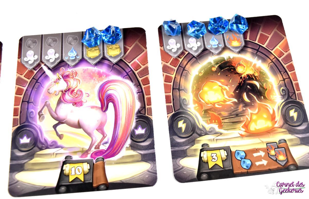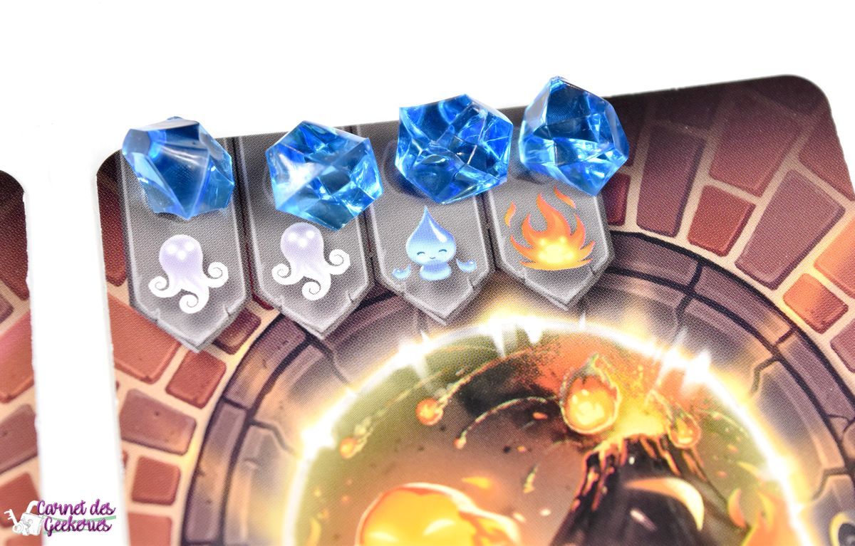 Il récupèrera tous les cristaux du portail validé qui retourneront dans sa réserve. Ensuite, il utilisera le pouvoir du portail s’il en a un, puis déplacera ce portail vers la zone de réussite. Plus qu’à choisir un nouveau portail au centre de la table, parmi les portails visibles. (différent de ceux déjà utilisés, un joueur ne peut pas avoir deux exemplaires identiques du portail).